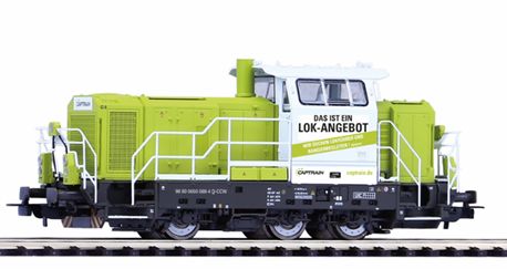 Die dreiachsigen diesel-hydraulischen Lokomotiven Vossloh G6 wurden ab 2008 und gebaut. Die ersten Serienmaschinen wurden an die Verkehrsbetriebe Peine-Salzgitter (VPS) ausgeliefert. Heute sind die Maschinen bei verschiedene privaten Eisenbahnverkehrsunternehmen im Einsatz. Das PIKO Modell gibt die 650 088-4 von Captrain wieder. Das Logistikunternehmen hat die glatten Seitenflächen der Rangierlokomotive genutzt, um dort eine attraktive Stellenanzeige zu platzieren. Das Modell überzeugt durch die perfekte Wiedergabe der Proportionen des Vorbildes sowie zahlreiche, angesetzte Teile, wie Handstangen und Geländer. Auch technisch ist das Modell auf dem Stand der Zeit. Der kraftvolle Motor sorgt für hervorragende Laufeigenschaften und das Modell verfügt über einen vorbildgerechten Lichtwechsel in wartungsfreier LED-Technik. Die mit einem Sound-Decoder ausgestatteten Modelle verfügen zudem über eine digital schaltbare Beleuchtung im Führerstand und vorbildgerechte Fahrzeugsounds. Dank der modernen PluX22-Digitalschnittstelle kann auch die analoge Version im Handumdrehen mit einem Decoder ausgestattet werden.