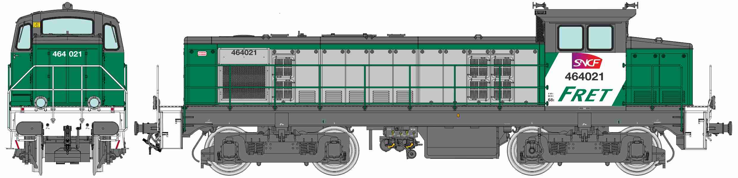 AC Sound, Diesellok BB 464021, "FRET" Grün Lackierung, "carmillon" Logo, SNCF Ep.VI