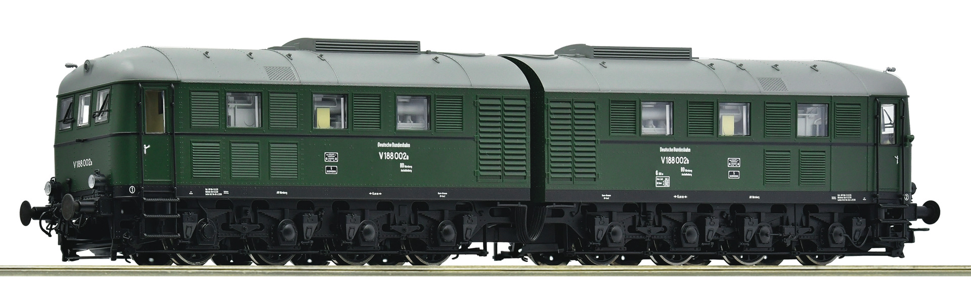 Dieselelektrische Doppellokomotive V 188 002 der Deutschen Bundesbahn. Edition-Modell! Formvariante! - Epoche-IIIa-Ausführung in grüner Lackierung mit Dachaufbau - Doppellok gebildet aus zwei fix miteinander gekuppelten Einheiten