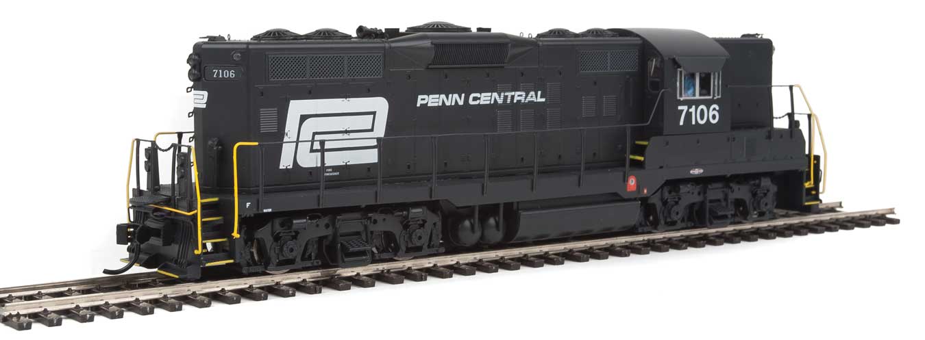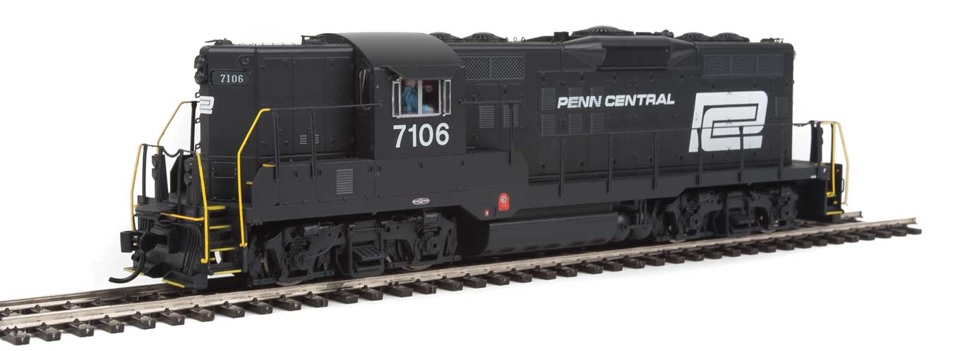 EMD GP9 Phase II - LokSound 5 Sound and DCC -- Penn Central #7106 (black, white, Large Logo)