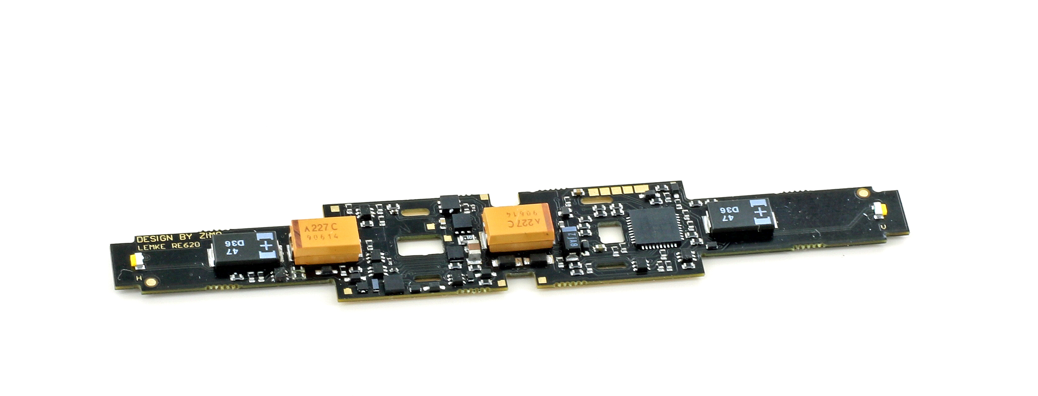 Tauschplatine mit integriertem Digitaldecode von Zimo für die Kato Re 6/6 (Art.-Nr. K10173 bis K10176). Passt auch in die alten Serien der Re 6/6.
