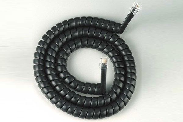Das Kabel ist gewendelt und hat eine ausgestreckte Länge von 3 m