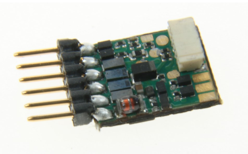 Bestimmt für kleinste Lokomotiven sind unsere neuen Decoder 73405 mit Anschlussleitungen und 73415 mit 6-poligem Stecker nach NEM 651. Sie zeichnen sich durch eine sehr kleine Baugröße aus, bei der eine hohe Leistungsfähigkeit erreicht wird. Durch die eingebauten Schutzmechanismen sind diese Decoder auch bei der kleinen Größe äußerst robust.
