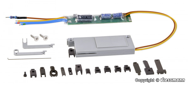 Leistungsstarker und geräuscharmer Antrieb mit langsamer Stellbewegung zum Stellen von Weichen und Signalen und anderen beweglichen Modellen. Der zugehörige Digitaldecoder befindet sich als Baugruppe im Kabel, daher ist der Antrieb besonders kompakt. Der Antrieb besitzt eine Schubstange für die Längsrichtung sowie einen Stelldraht für die seitliche Bewegung und ist für Schwellengleise ohne Bettung (Modell- gleis) und andere Antriebsaufgaben geeignet. Zahlreiche Adapter liegen bei und ermöglichen den Antrieb vieler gängiger Weichen von Spurweite N bis 1. Maximaler Hub: 1 cm. Maße: L 5 x B 2,02 x H 0,58 cm. Alternativprodukt für Viessmann Artikel 4554 Universal-Weichenantrieb.