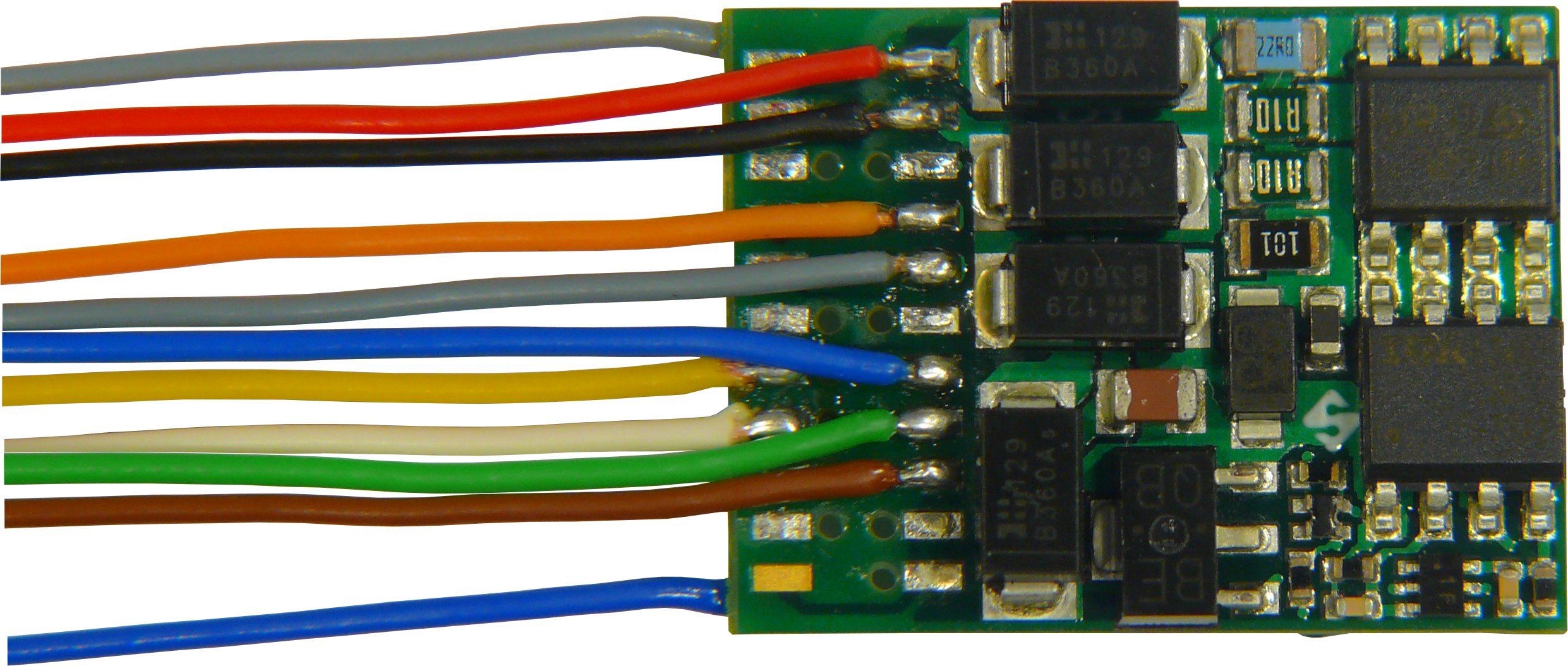 H0 Decoder 11 Drähte. Details: Maße: 20,5 x 15 x 4 mm, 1,2 A, 6 FA, Servo, Energiespeicher