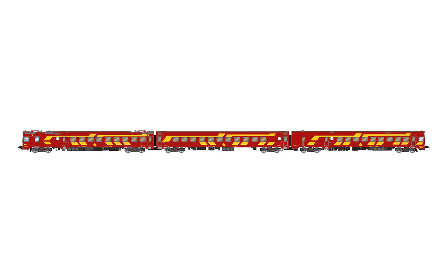 RENFE, 3-unit EMU class 444, unit 444-004 in original red/yellow livery, ep. IV
