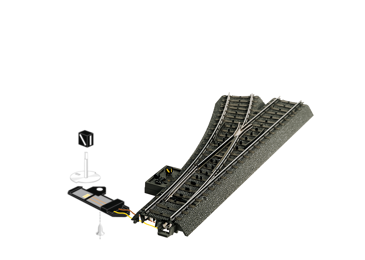 Zum Nachrüsten von 2 C-Gleis-Weichen. Passend für rechte und linke oder eine Dreiwegweiche. Verwendbar mit Handschalthebel und/oder mit Elektroantrieb 74491 Beleuchtung mit wartungsfreien, warmweißen Leuchtdioden.