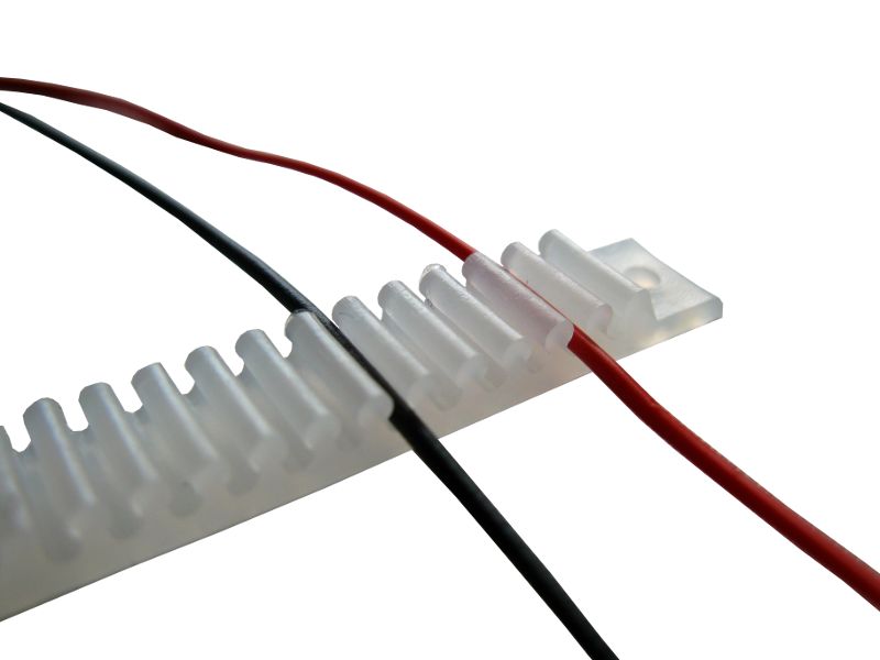 Kabelhalter Litzenhalter Halter für Kabel und Litzen - Schluß mit dem Kabelsalat. Mit diesem simplen Ordnungshelfer verlegt man die Kabel unter der Modellbahn-Anlage sauber und übersichtlich. Passend zu unseren LIFY Litzen. In jedem Halter können bis zu 12 Leitungen (max. Querschnitt 0,25mm² / 1,3mm) eingeklemmt werden. Zur Montage werden die Halter unter die Anlage geschraubt oder geklebt.Abmessungen: Länge ca. 40mm - Breite ca. 6mm.