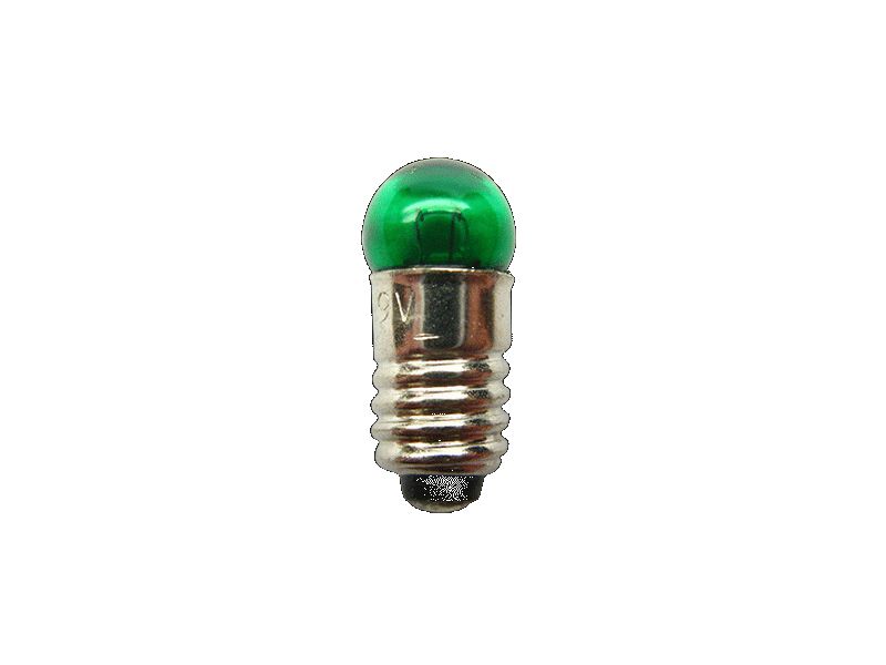 E5.5 Glühlampe 6mm Kopf grün 19V 60mA - Standard Glühlampe mit einem E5,5 Gewinde, wie es in vielen Lokomotiven und Beleuchtungssockeln verwendet wird.