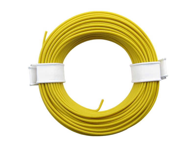 10 Meter Ring Miniaturkabel Litze flexibel LIY 0,14mm² gelb - Qualitätskabel eines deutschen Herstellers. Gewickelt zu einem kleinen und praktischen Ring.Dieses Kabel hat sich schon vielfach bewährt. Es besitzt hervorragende Verarbeitungseigenschaften und ist ideal im Modellbaubereich, z.B. zum Verdrahten von LEDs oder Lokdecodern einsetzbar.