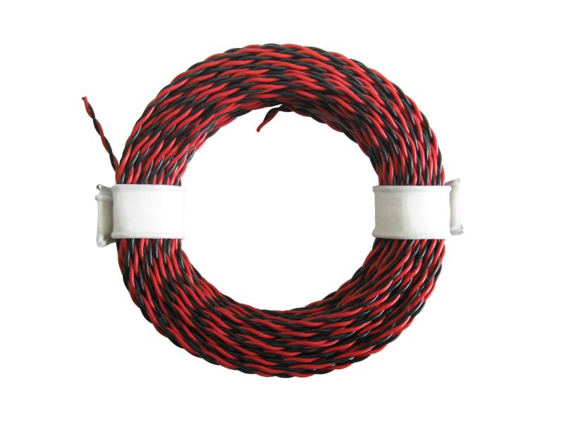 10m LIYV Doppellitze Zwillingslitze 2x 0,04mm² rot schwarz verdrillt - Qualitätskabel eines deutschen Herstellers. Gewickelt zu einem kleinen und praktischen Ring.Dieses Kabel hat sich schon vielfach bewährt. Es besitzt hervorragende Verarbeitungseigenschaften und ist ideal im Modellbaubereich, z.B. zum Verdrahten von LEDs oder Lokdecodern einsetzbar.