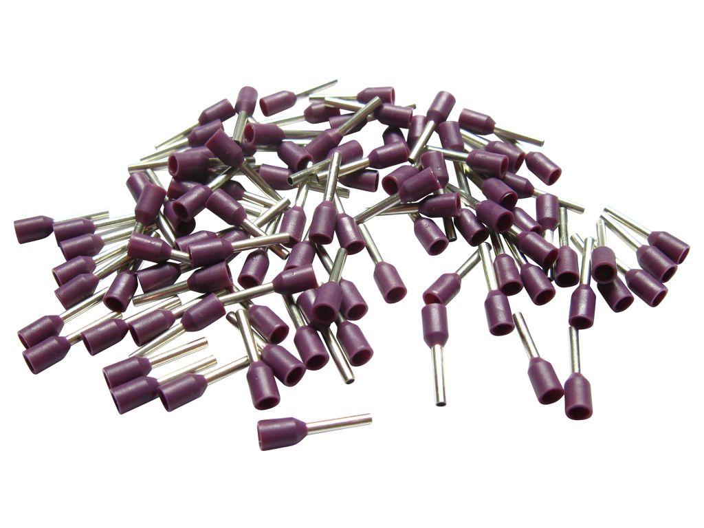 500 Aderendhülsen isoliert 0,25mm² N lila violett DIN 46228 Teil 4 - 0,25mm² Aderendhülsen - isoliert, für den sauberen Endabschluss von flexiblen Litzenenden. Gepackt zu je 500 Stück in einem Kunstoffbeutel.