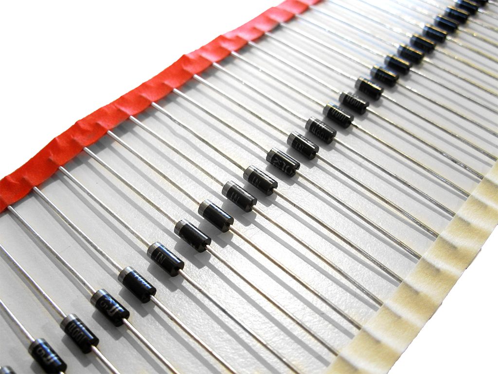 Universaldiode Sperrdiode 1N4001 Silizium Diode 50V 1A - Diese Silizium Dioden können zum Schutz von LEDs verwendet werden. LEDs dürfen nicht an Wechselspannung betrieben werden, andernfalls verringert sich die Lebensdauer erheblich. Daher kommen diese Dioden zum Einsatz. Sie machen aus der Wechselspannung vom Trafo eine Gleichspannung.