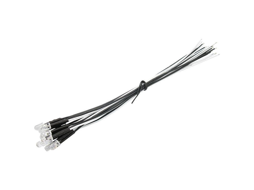 10 Stück LED 5mm klar mit Anschlusskabel und Widerstand kaltweiß -