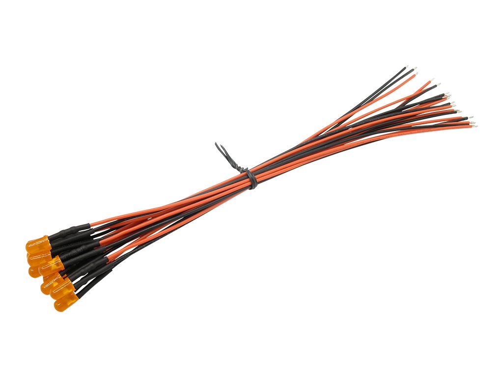 10 Stück LED 5mm eingefärbt mit Anschlusskabel und Widerstand orange diffus -
