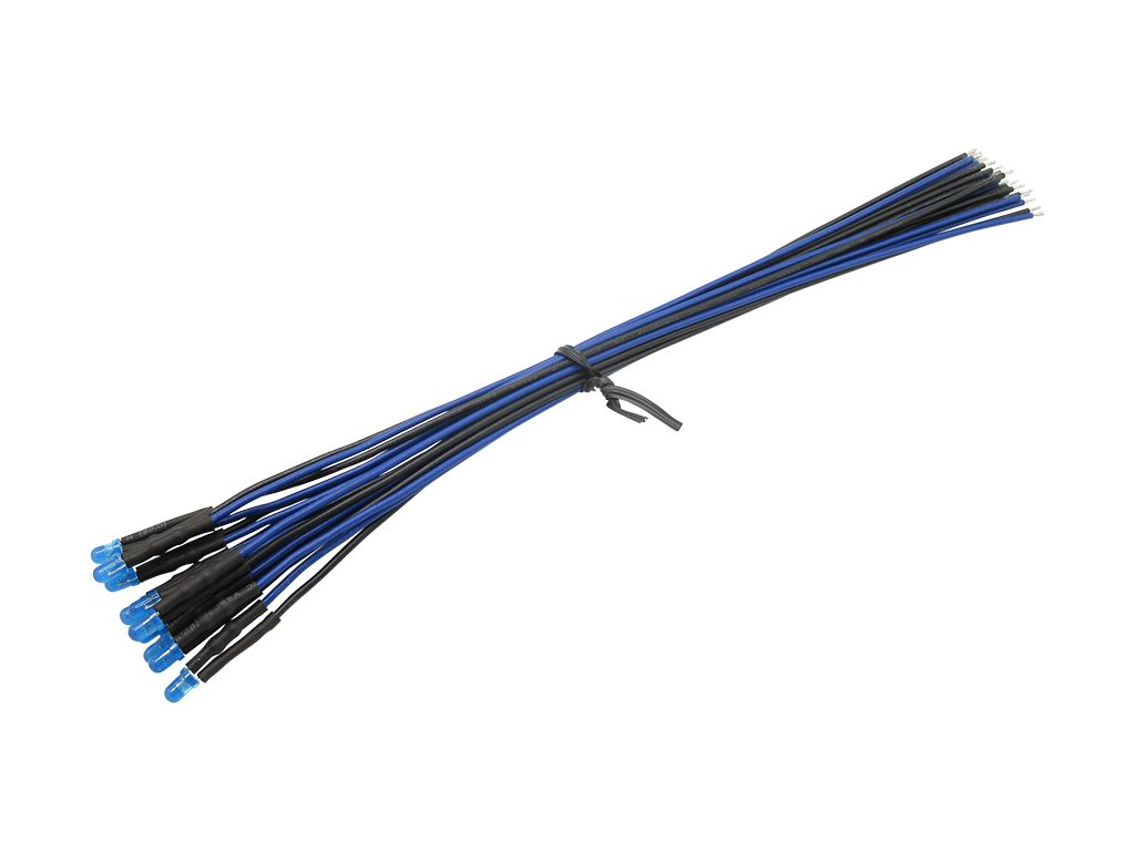 10 Stück LED 3mm eingefärbt mit Anschlusskabel und Widerstand blau diffus -