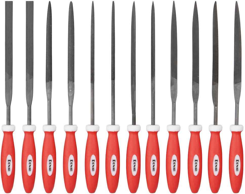Nadelfeilensatz Nadelfeile Schlüsselfeilen Sortiment Set 12 teilig - 12 Stück Miniaturfeilen Schlüsselfeilen mit rundem Kunststoffschaft