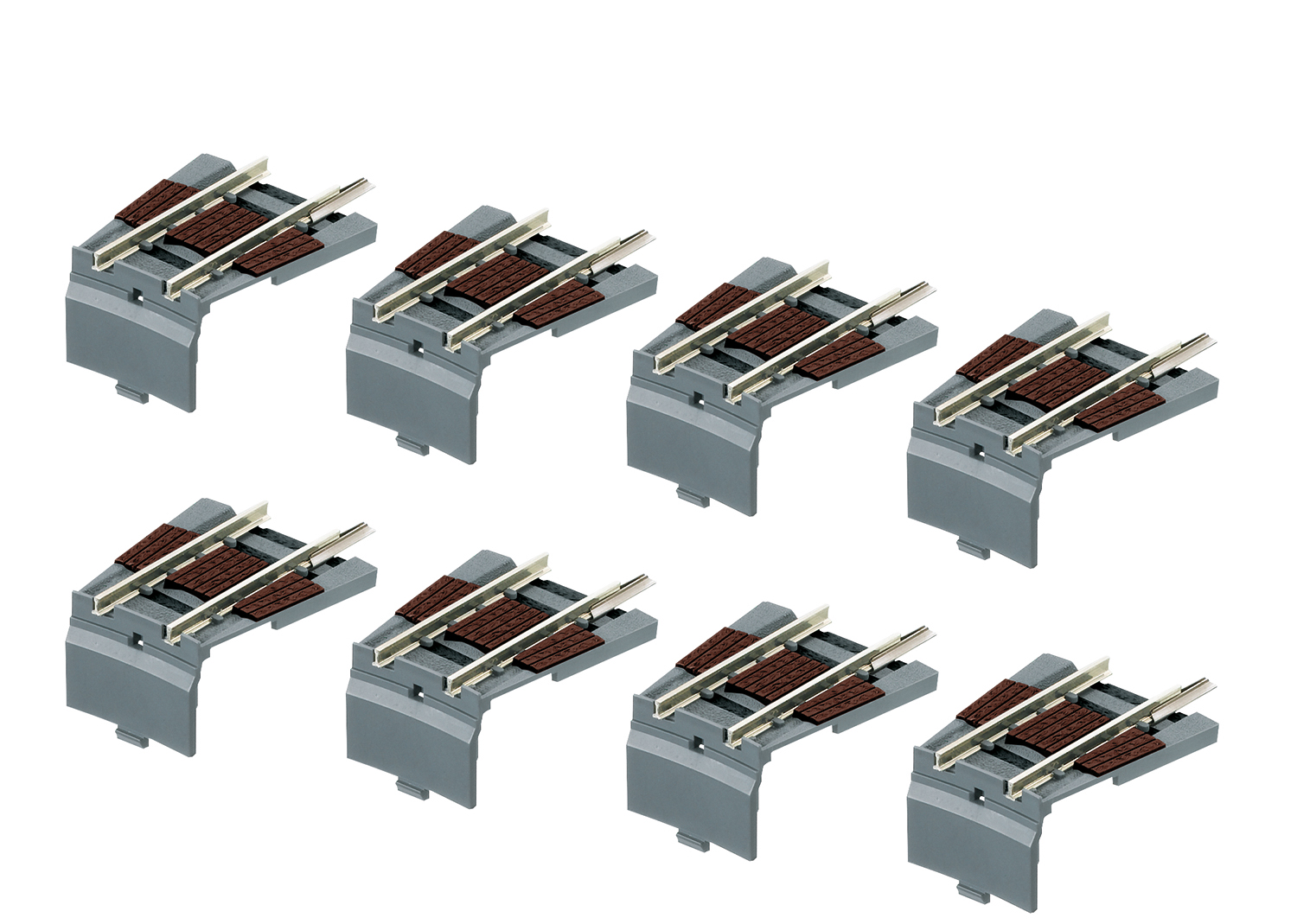 8 Gleisanschluss-Randsegmente zum Aufstecken auf den Drehscheibenrand. Mit 2 Erweiterungssätzen kann die Drehscheibe bis auf 24 Gleisanschlüsse ausgebaut werden. Farblich passend zur Drehscheibe 66570.