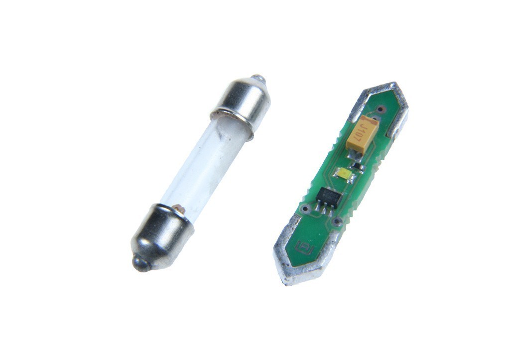 Die in vielen Wagen eingesetzten Soffitten-Lampen sind nicht mehr erhältlich. Als Ersatz mit deutlich besseren Eigenschaften eignen sich unsere neuen LED-Soffitten. Durch den Einsatz von LEDs und einer elektronischen Regelung erreichen LED-Soffitten bereits ab 6 V ihre volle Helligkeit. Vorbei ist die Zeit, als die Beleuchtung der Wagen bei langsamer Fahrt im Gleich- oder Wechselstrombetrieb nur glimmte und bei schneller Fahrt einem Flutlicht glich. Mit den LED-Soffitten wird eine nahezu gleichbleibende Helligkeit erreicht. Die Stromaufnahme beträgt nur noch 15 mA im Gegensatz zu etwa 40 mA der originalen Soffitten. Erhältlich sind die LED-Soffitten im 2er Pack in Reinweiß für die Wagen, in denen im Original Leuchtstofflampen eingebaut sind und in Warmweiß für die Wagen, in denen im Original Glühlampen benutzt werden. Ersatz für alle 23 mm Soffitten-Glühlampen mit 12–19 V, wie sie z.B. in Roco-, Lima- und Ade-Wagen benutzt wurden. Für Digital, Gleichstrom und Wechselstrom.