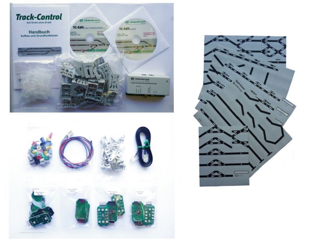 Das Basis-Set enthält alle Artikel, die zur Grundausstattung gehören und pro Stellpult nur einmal erforderlich sind: ein Anschlussmodul, ein Anschlusskabel, ein LocoNet-Kabel, eine CD mit dem Planungsprogramm und das Handbuch. Außerdem 30 Segmente mit Streuscheiben und Steckverbindern, 32 Tastenkappen, 3 Weichenplatinen, 3 Signalplatinen, 4 Kreuzverbindungsplatinen, 2 Verbindungsplatinen ohne Ausleuchtung und ein Foliensatz für den Aufbau eines kleinen Stellpults. Funktionen/Eigenschaften: Aus nur 7 verschiedenen Artikeln lässt sich jedes Gleisbildstellpult aufbauen. Rahmenloser Tischaufbau, nur 12 mm Höhe. Stecksystem, keine Verdrahtung notwendig. Schaltet digitalisierte Weichen, Signale, Entkuppler usw.. Aufruf von Fahrstraßen über Start-Ziel Tasten. Ausleuchten von Fahrstraßen. Gleisbesetztmeldung. Steuerung von mehrbegriffigen Signalen über Hilfstasten. Vorsignale zeigen in Abhängigkeit vom gewählten Fahrweg die Stellung von Hauptsignalen an. Einfache Programmierung und Bedienung. Inklusive Planungs- und Konfigurationssoftware. Zum Anschluss an alle Digitalzentralen mit LocoNet-Anschluss, z.B. DAISY, Intellibox und baugleiche Geräte. Für die Stromversorgung wird ein 16 VWechselstromtrafo benötigt, z.B. unser 70 VA-Trafo Art.-Nr. 20075.
