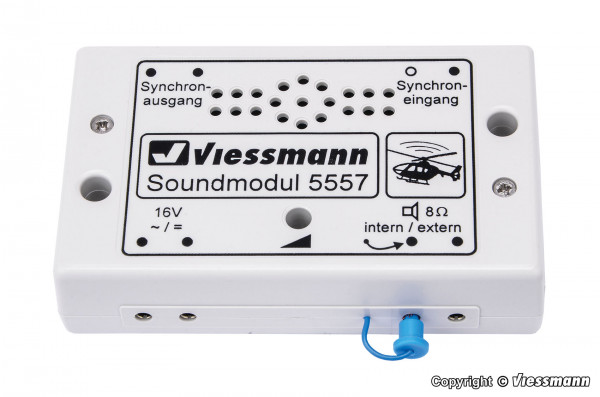 Modellbahn mit allen Sinnen erleben: Das stationäre Soundmodul ergänzt die Szenen der ?Bewegten Welten? um die passenden Geräusche und ist in verschiedenen Themen erhältlich. Das Soundmodul verfügt über einen internen Lautsprecher und einen Anschluss für einen externen Lautsprecher. Die Lautstärke ist selbstverständlich regelbar. Betriebsspannung 14 ? 24 V DC = bzw. 10 ? 16 V AC ~. Passend für: Polizei- oder Rettungshubschrauber.