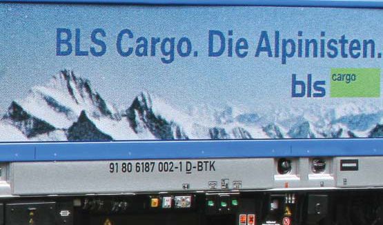 Vorserienlokomotive BR 187 002 im Zustand der Messfahrten für das Bahnunternehmen BLS Cargo.