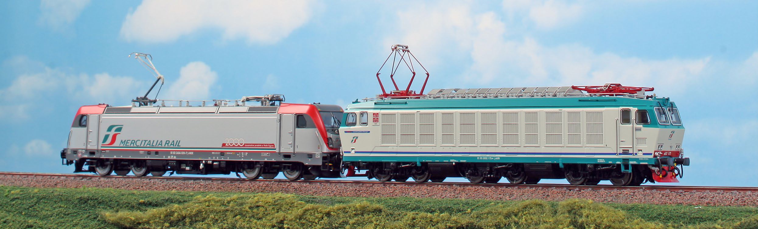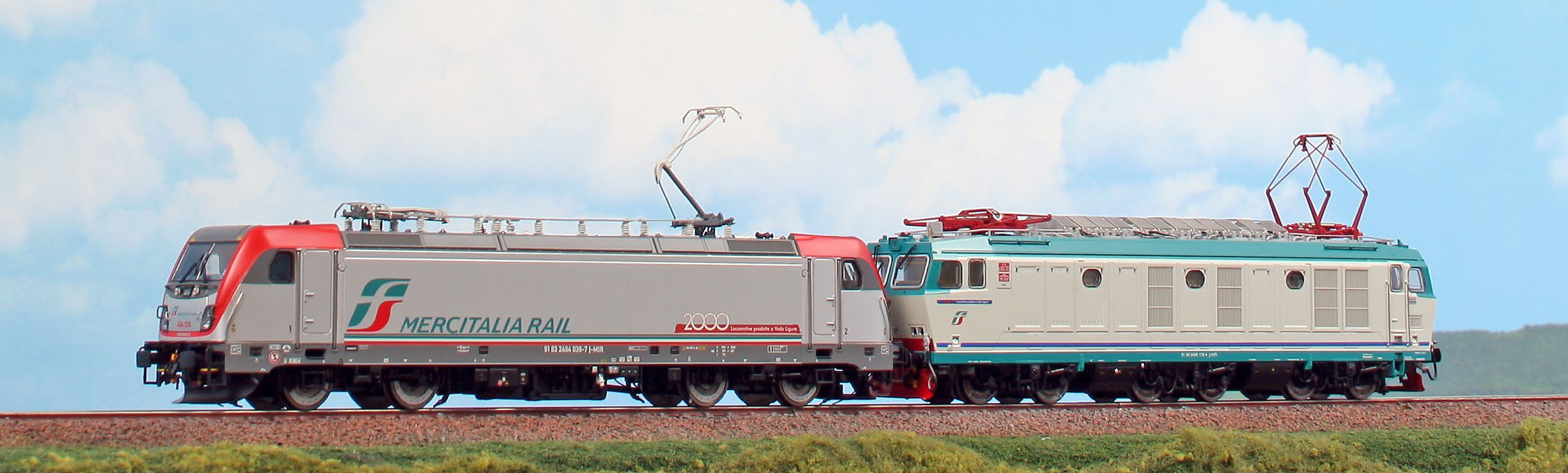 Lok-Set von Vado Ligure, bestehend aus der E.652 172 (Lokomotive 1000) und der E.494 039 (Lokomotive 2000), beide motorisiert, in den aktuellen Lackierungen von Mercitalia Rail, FS, Epoche VI