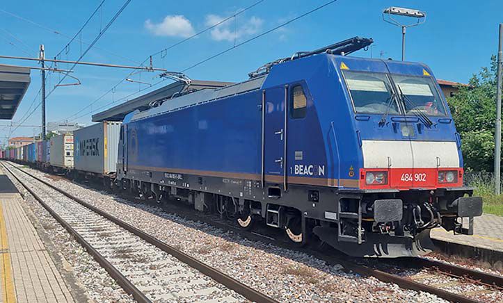 Elektrolokomotive TRAXX 484 902 in "Beacon"-Lackierung