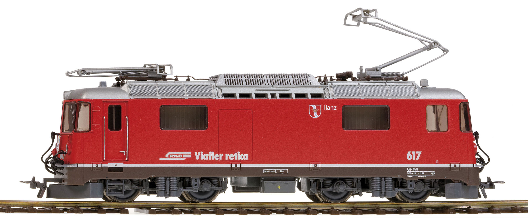 26 Jahre nach der Inbetriebsetzung der Ge 4/4 I 601-604 als erste Drehgestell-Elektrolokomotive der RhB mit einer Leistung von 1184 kW setzten 1973 die thyristorgesteuerten Ge 4/4 II 611-620 neue Maßstäbe in der Zugförderung auf Bündner Meterspurgleisen. Die modernen 1700 kW starken und maximal 90 km/h schnellen Maschinen traten an, um diverse Baureihen der ersten Ellokgeneration mit Stangenantrieb und nicht mehr zeitgemäßer Leistung bzw. Höchstgeschwindigkeit abzulösen. Sie folgten zwei zuvor mit Thyristortechnik beschafften Baudienstfahrzeugen und sechs Vorortzug-Triebwagen; außerdem flossen Erfahrungen der BLS mit ihren normalspurigen Re 4/4 in die Entwicklung ein. Die zehn von SLM/BBC gebauten und grün lackierten Maschinen erfüllten das aufgestellte Anforderungsprofil und reichten fast an das Leistungsprogramm der sechsachsigen und schwereren Ge 6/6 II 701-707. Dank ihrer Vielfachsteuerung konnten in Doppeltraktion schwerste Züge auf dem Stammnetz befördert werden, so daß die Maschinen zur Universallok für den Schnell-, Regional- und Güterzugdienst wurden. 1984 folgte eine zweite Serie mit den 13 Ge 4/4 II 621-633; sie wurden bereits in roter Farbgebung geliefert. Die mit Einholmstromabnehmern ausgerüsteten Loks erhielten wie die anderen Ge 4/4 I und Ge 6/6 II Wappen und Taufnamen.