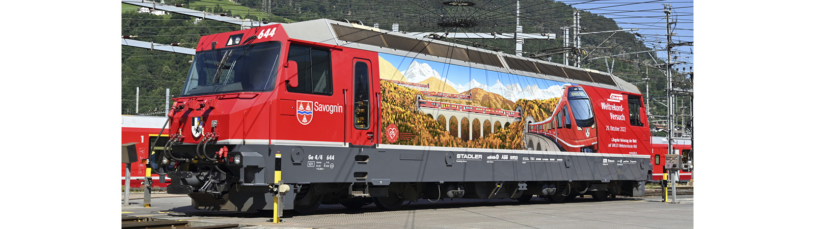 Die Rhätische Bahn unternimmt am Samstag, 29. Oktober 2022, den offiziellen Versuch, den längsten Reisezug der Welt über das UNESCO Weltkulturerbe der Albulabahn fahren zu lassen. Mit diesem Weltrekordversuch will die RhB mit ihren Partnern ihren Beitrag zum Jubiläum 175 Jahre Schweizer Bahnen leisten und eine Pioniertat realisieren, die es so noch nie zu sehen gab. Unterstützt wird der Weltrekordversuch von Unternehmen aus der Schweiz und Deutschland, allesamt führende Kompetenzpartner aus Technologie, Industrie, Dienstleistung, Modellbahnindustrie,Tourismus und Medien.