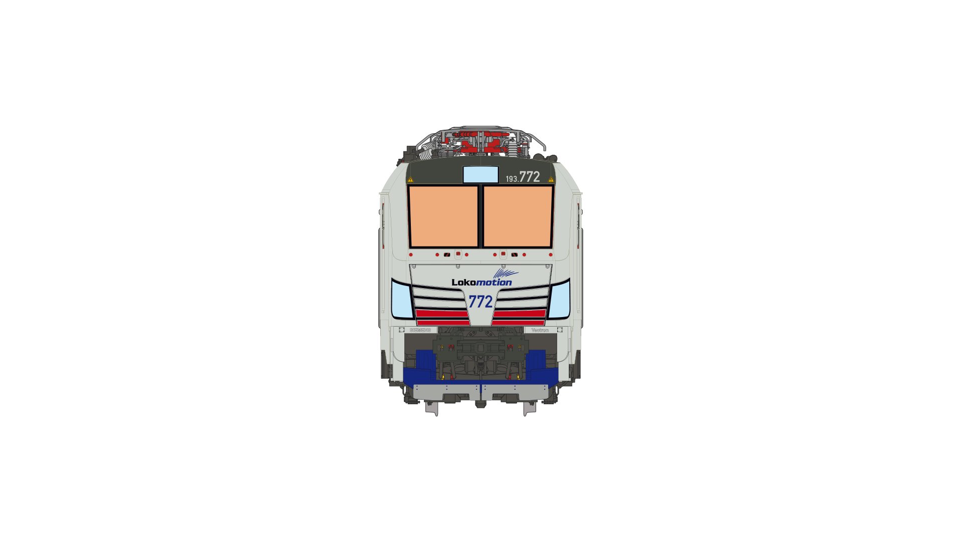 193 772 "Viola" von Lokomotion, Zustand 2016, 4 Stromabnehmer, Zulassung D/A/I, weißes Gehäuse mit "Zebra" blau