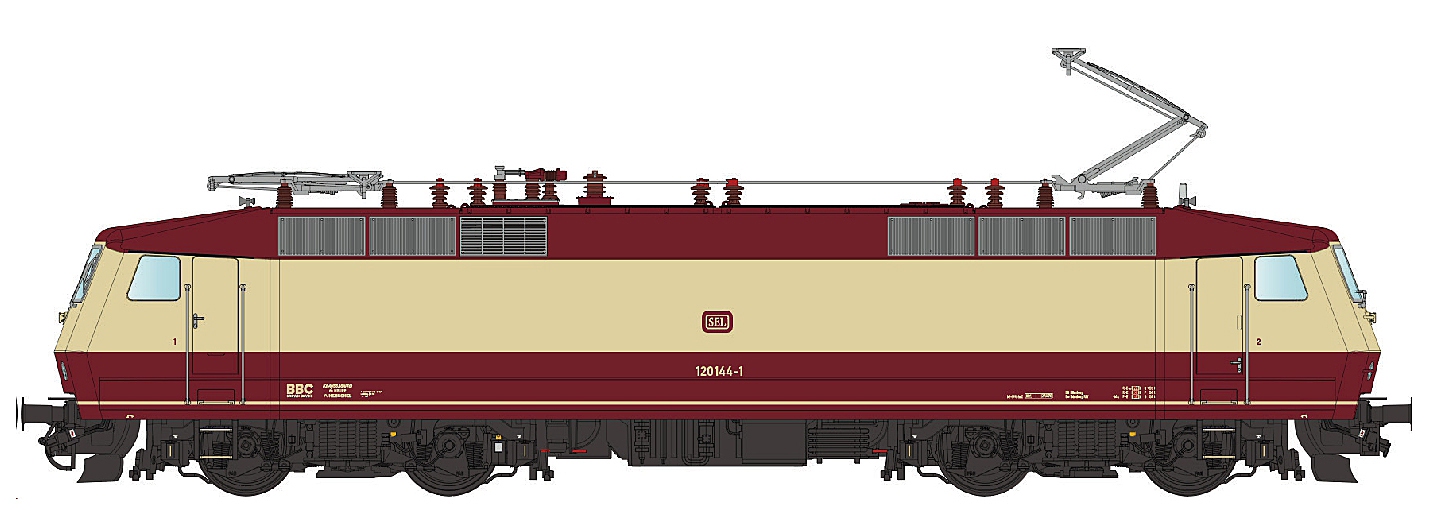 DCC Sound, SEL BR 120 144-1 (BBC) Elektrolokomotive, elfenbein/purpurrot. Ep.VI