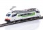 Modell: Mit Digital-Decoder mfx+ und umfangreichen Geräuschfunktionen. Geregelter Hochleistungsantrieb mit Schwungmasse, zentral eingebaut. Alle vier Achsen über Kardan angetrieben. Haftreifen. Fahrtrichtungsabhängig wechselndes Dreilicht-Spitzensignal und zwei rote Schlusslichter konventionell in Betrieb, digital schaltbar. Fernlicht schaltbar. Spitzensignal an Lokseite 2 und 1 jeweils digital separat abschaltbar. Doppel-A-Licht-Funktion. Führerstands- und Führerpultbeleuchtung jeweils separat digital schaltbar. Beleuchtung mit wartungsfreien warmweißen und roten Leuchtdioden (LED). Mit Pufferspeicher. Viele separat angesetzte Teile wie Griffstangen, Sandkästen, UIC-Steckdosen und Dachleitungen. Detailliert ausgeführte Dachaufbauten mit vier neu konstruierten Stromabnehmern mit unterschiedlichen Schleifstücken für den Einsatz in Deutschland, der Schweiz und Italien. Pufferhöhe nach NEM. Bremsleitungen, Schraubenkupplungen, Steckdosen und geschlossene Schienenräumer liegen als separat ansteckbare Teile bei. Länge über Puffer 21,7 cm.