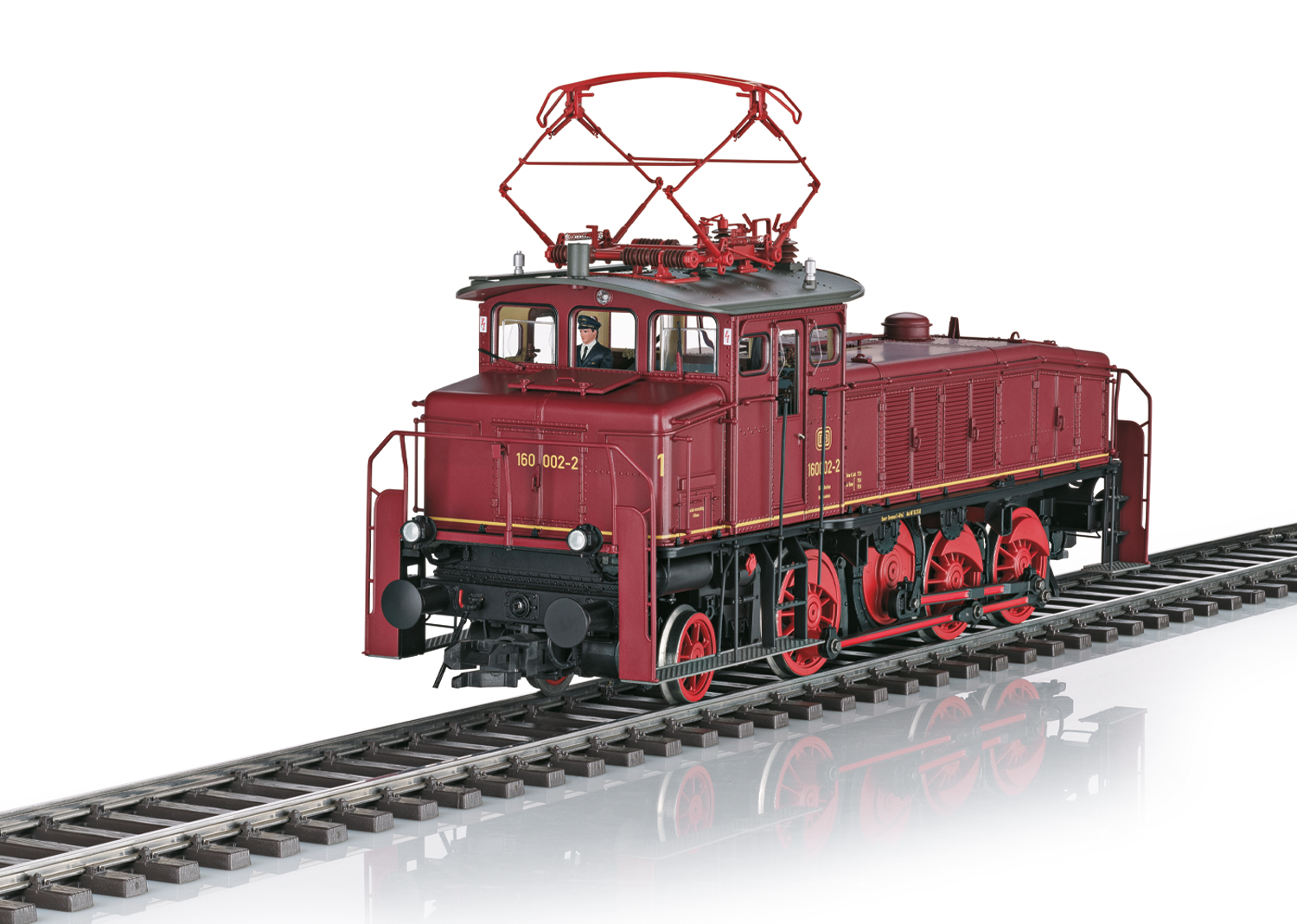 Vorbild: Elektrische Rangierlokomotive Baureihe 160 der Deutschen Bundesbahn (DB). Purpurrote Grundfarbgebung. Lok-Betriebsnummer 160 002-2. Betriebszustand um 1971.