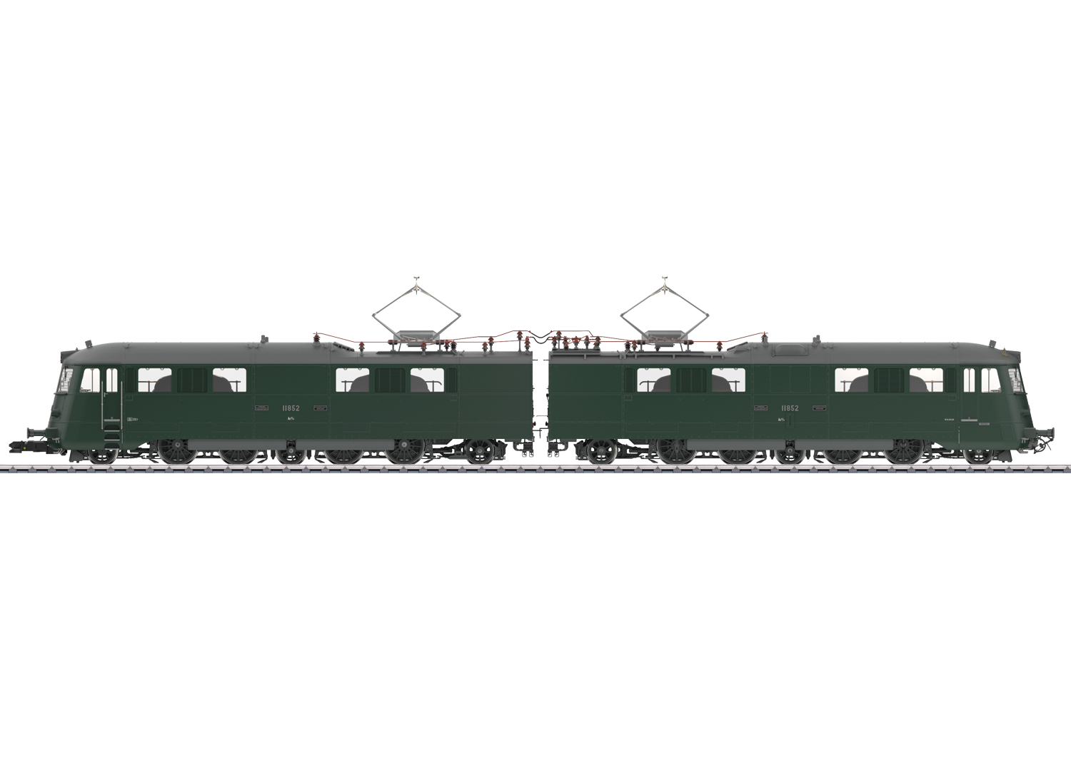 Modell: Komplett neukonstruiertes, höchstdetailliertes High-Class Vollmetall-Profimodell. Fahrgestell mit Hauptrahmen aus Zinkdruck- und Messingguss, Lokaufbau aus Messingblech. Ansetzteile aus Messing-Schleuderguss. Mit mfx Digital-Decoder und 32 Funktionen, Stromspeicher parametrisierbar. Umfangreiche Licht- und Soundfunktionen. Für ein qualitativ höchstwertiges Sounderlebnis sorgt je Lokteil ein Markenlautsprecher in HiFi-Qualität.Betrieb mit Wechselstrom, Gleichstrom, Märklin Digital und DCC möglich. Je Lokteil ein zentral eingebauter und eigens für dieses Modell konstruierter Bühler-Hochleistungsmotor mit Antrieb auf alle Achsen! Im Digitalbetrieb motorisch heb- und senkbare, vorbildgerechte Scherenstromabnehmer. Weißes 3-Licht-Spitzensignal mit LEDs im Wechsel mit weißem schweizerischen Schlusslicht, digital schaltbar. Ebenso separat digital schaltbar ist das schweizer Falschfahrsignal. Warmweiße LED-Beleuchtung im Führerstand und im Maschinenraum/-gang, ebenso sind die Fahrpulte in den Führerständen beleuchtet. Führerstandstüren zum Öffnen. Aufwendige, höchstdetaillierte Nachbildung der Inneneinrichtung von Führerstand und Maschinenraum, Führerstand mit eingebauter Lokführerfigur. Griffstangen aus Metall und viele weitere angesetzte Details wie: Schilder, Scheibenwischer, Pfeife u.a. Pufferbohlen mit Federpuffern und angesetzten Bremsleitungen. Hinten serienmäßig montierte, fernbedienbare Telexkupplung hinten gegen beigefügte Schraubenkupplungen austauschbar. Vorne vorbildgerechte Schraubenkupplung. Telexkupplung für vorn im Lieferumfang.