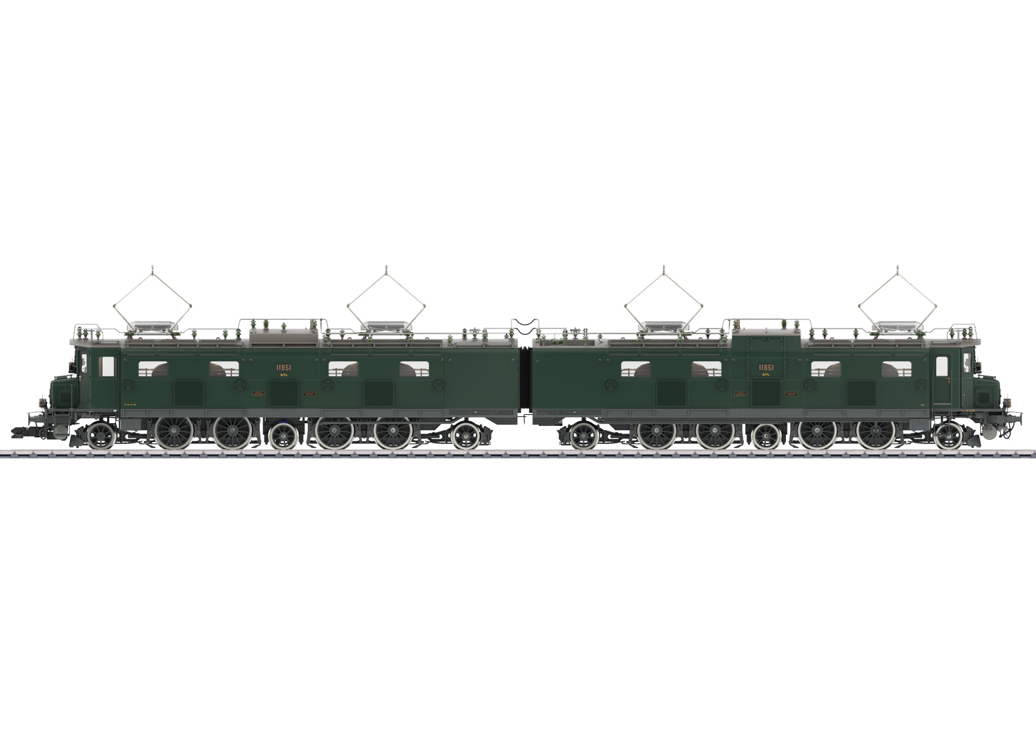 Vorbild: Elektrolokomotive Serie Ae 8/14 Nr. 11851 der Schweizerischen Bundesbahnen (SBB) in tannengrüner Grundfarbgebung ihres Auslieferungszustandes von 1932. Die Lok war bis 1938 in diesem Zustand in Betrieb. Epoche II.