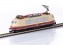 Elektrolokomotive BR 103 - Paradepferd im TEE-KleidSie waren einst die absoluten Paradepferde der Deutschen Bundesbahn. Formschön, elegant, dynamisch, schnell und mit wegweisender Technik ausgestattet. Die Rede ist von der legendären Baureihe 103. Schon die Prototypen sorgten für helle Aufregung, sobald sie sich fast schon majestätisch über die Gleise bewegten. Ihre erste Blütezeit hatten sie vor den TEE-Zügen, die 1. Klasse, gediegenes Plüsch und hochwertige Gastronomie im Speisewagen boten. Später, in den Zeiten der EuroCity- und InterCity-Züge, waren sie, meist im Spitzentempo von 200 km/h dahinsausend, allgegenwärtig. Kein Wunder in Anbetracht von insgesamt 149 gebauten Exemplaren, die keinem Bahnreisenden verborgen blieben. Viele Maschinen sind dann sang- und klanglos verschwunden. Einigen wenigen jedoch blieb es vorbehalten, bis heute an die einst ruhmreiche Baureihe zu erinnern. Dazu zählt die 103 113. Auch sie war schon ausgemustert, kam dann aber wieder in den Plandienst zurück. Und dies sogar zweimal. Seit 2017 ist sie nun im Ruhestand und nur ab und an mit Sonderzügen unterwegs, so war sie 2019 auch in Göppingen zu Gast. Optisch fällt sie auf, denn ihr Rahmen ist nicht schwarzgrau, sondern purpurrot gestrichen, was sich würdig zum beigen Farbton gesellt. Und zum Schluss noch mehr Schönes: Die 103 113, die zum Bestand des DB-Museums Nürnberg, Außenstelle Koblenz-Lützel, zählt, wird auch weiterhin für begeisternde Blicke sorgen. Denn im Herbst 2020 erhielt sie eine Untersuchung und frischen Lack. Sogar die Pufferverkleidung wurde wieder angebracht.Vorbild: Elektrolokomotive 103 113-7 des DB-Museums im aktuellen Zustand der Epoche VI.Modell: Erstmalig mit Lokaufbau in metallgefülltem Kunststoff. Feine und aufwendige Farbgebung und Beschriftung. Ausgerüstet mit Glockenankermotor, warmweiße LED-Spitzenbeleuchtung mit der Fahrtrichtung wechselnd. Oberlichter des Maschinenraums mit Fenstereinsätzen und Beleuchtung des Maschinenraums. Beide Drehgestelle angetrieben. Unsichtbar angebrachter Umschalter für den funktionierenden Oberleitungsbetrieb. Länge über Puffer 88 mm.