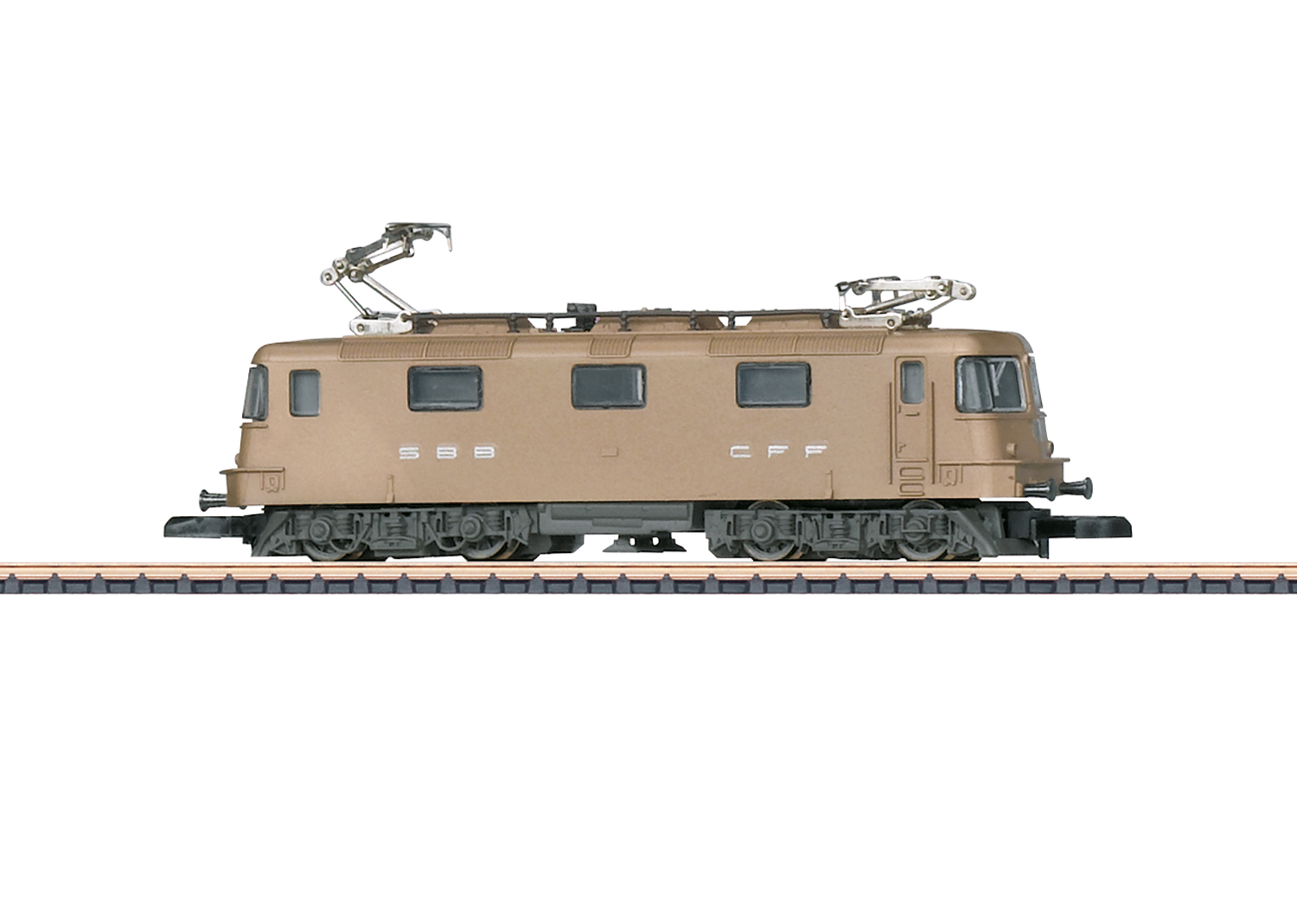 Modell: Fortsetzung der Serie der Bronze Manufakturmodelle. Gehäuse-Aufbau aus echtem Bronze-Guss in Handarbeit gegossen, transparent schutzlackiert. Feines, ausgewogenes Farbdesign mit Bronze und Schwarztönen. Ausgerüstet mit Glockenankermotor mit LED-Beleuchtung weiss/rechts unten weiss (Schweizer Lichtwechsel) im Wechsel der Fahrtrichtung. Beide Drehgestelle mit allen Achsen angetrieben. Reduzierte Beschriftung zu Gunsten der Bronze-Optik. Überarbeitete Gehäusebefestigung. Länge über Puffer 75 mm. Lieferung in edler Sonderverpackung bestehend aus schwarzer Holzbox mit Echtheitszertifikat. Vorbild: Universallokomotive Baureihe Re 4/4 II der Schweizerischen Bundesbahnen (SBB)
