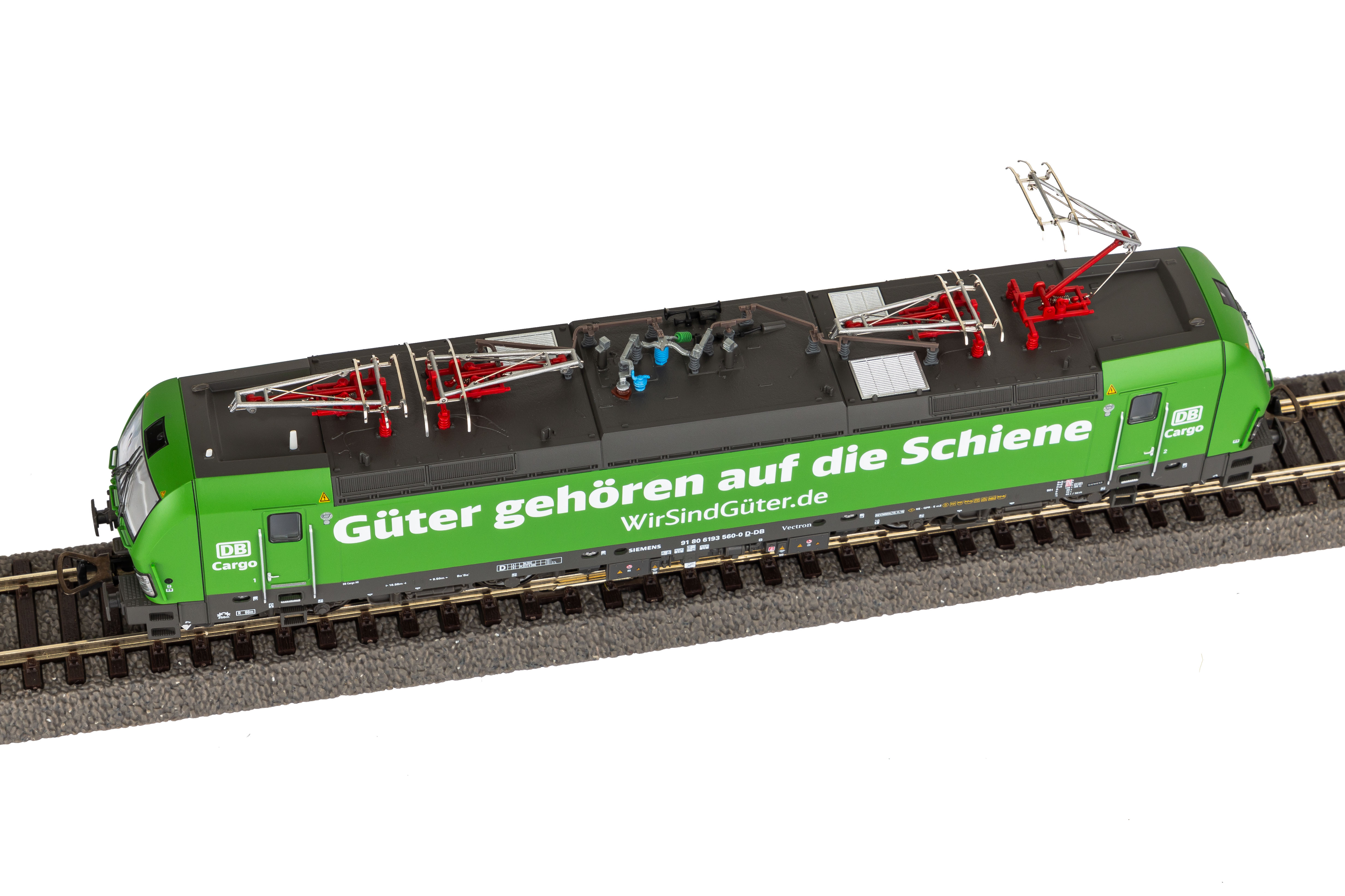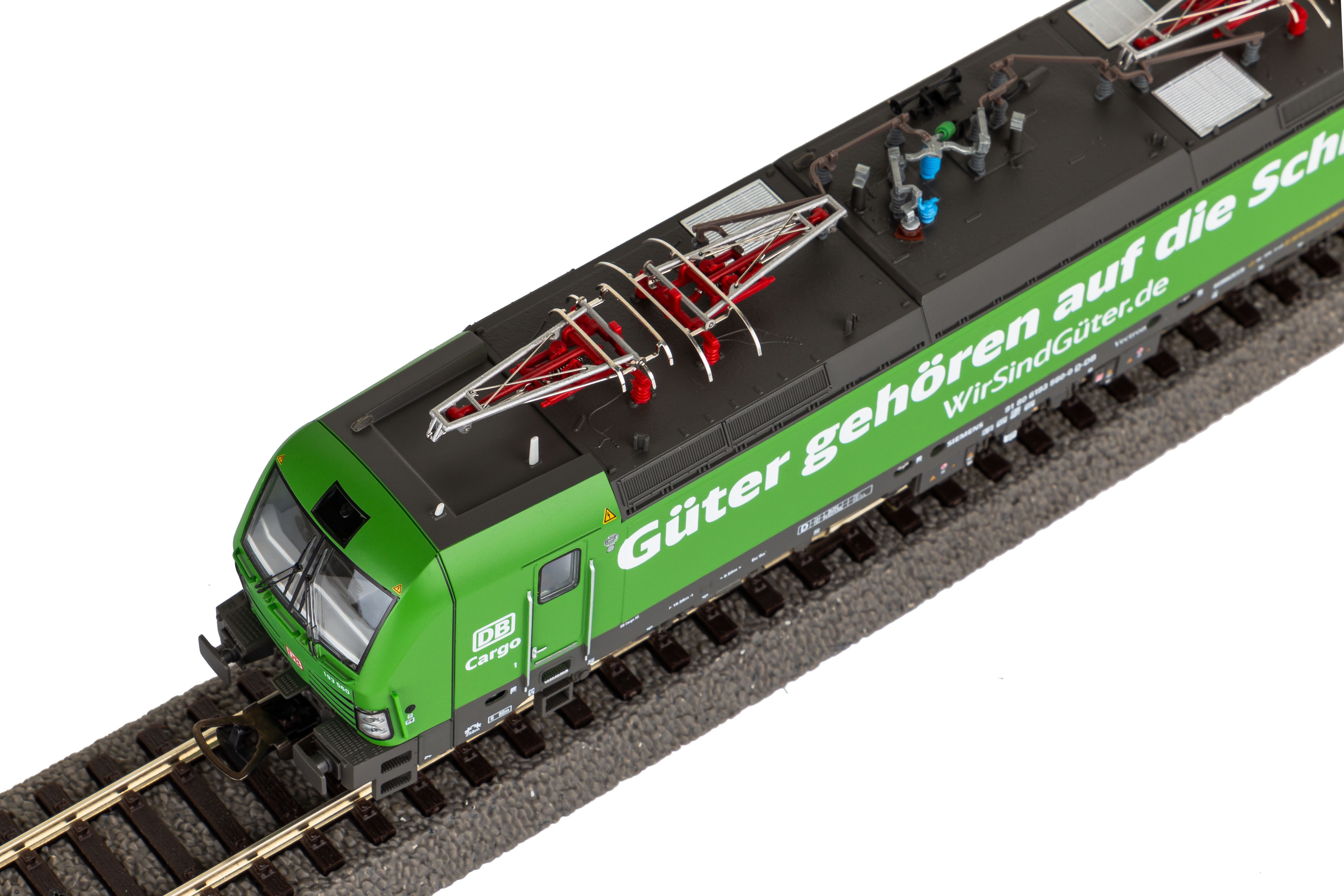 Druckvariante des Vectron im Design "Güter gehören auf die Schiene" der DB Cargo in Epoche VI. Das Modell verfügt über einen PSD XP Sound-Decoder.