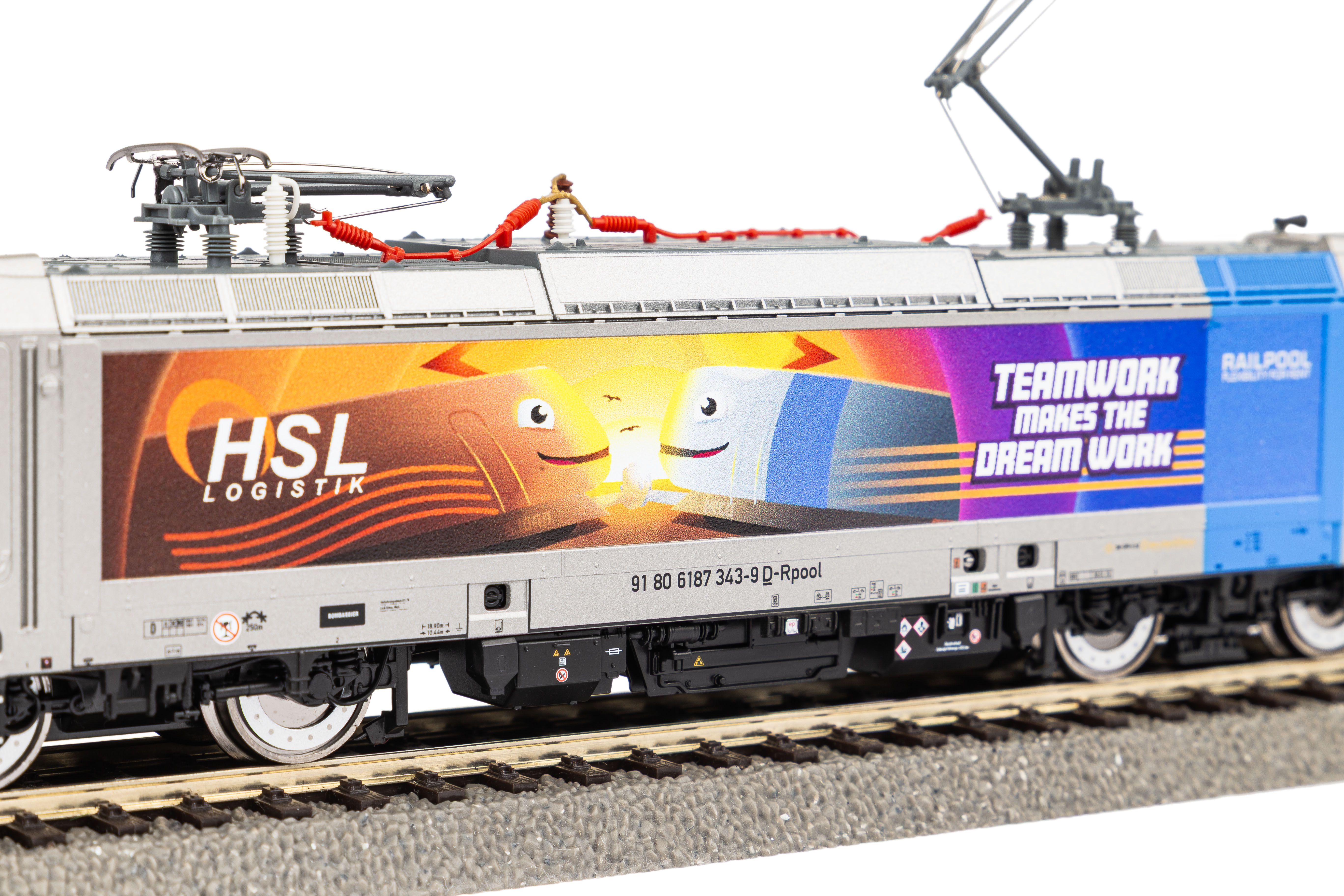 Neuheit 2025: Druckvariante der BR 187 im Design Teamwork der HSL in Epoche VI. Das Modell besitzt für den einfachen Einbau eines Decoders eine PluX22-Schnittstelle und ist für die Nachrüstung von Sound mit größtmöglichem Lautsprecher vorbereitet.