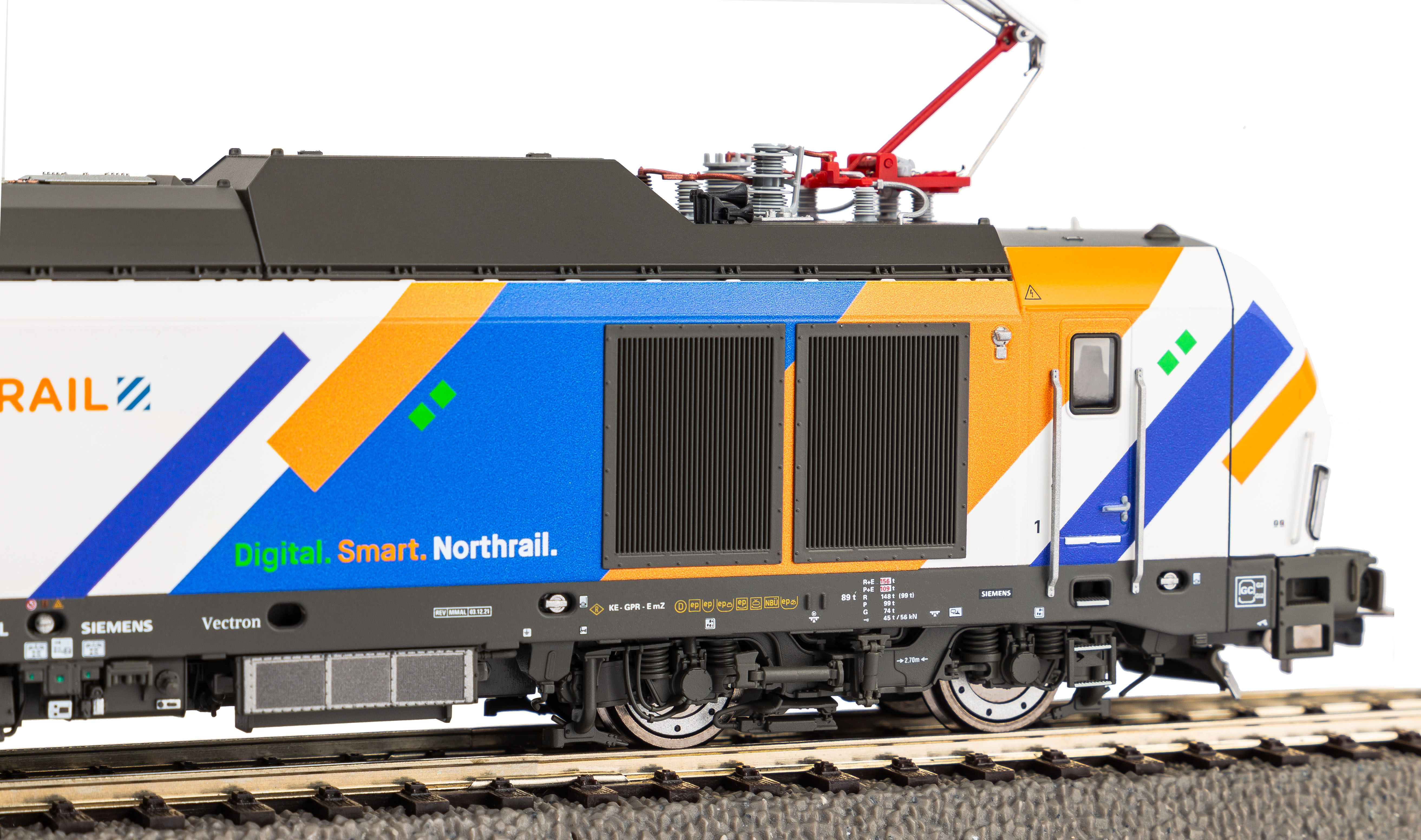 Neuheit 2025: Designvariante der BR 248 Vectron Dual Mode von Northrail in Epoche VI. Die großen Seitenflächen mit den markanten Lüftern und das Dach mit einem Stromabnehmer prägen das Erscheinungsbild des modernen Vectron Dual Mode. Großer Wert wurde bei Konstruktion und Werkzeugbau auch auf Details gelegt: äußerst plastisch wirkende Gravuren der Lüftungsgitter und Drehgestelle mit hervorragender optischer Tiefenwirkung unterstreichen dies. Technisch führt das Modell die bewährte Linie der PIKO Konstruktionen fort. Als Antrieb dient ein kräftiger Mittelmotor, zwei Schwungmassen sorgen für hervorragende Laufeigenschaften und diagonal angeordnete Haftreifen ermöglichen die Beförderung langer Züge. Im Digitalbetrieb können Führerstands- und Führerpultbeleuchtung digital geschaltet werden. Hierfür verfügt das Modell ab Werk über einen PSD XP Sound-Decoder, der zudem in Kombination mit dem großen Lautsprecher für besondere Sounderlebnisse auf der Modellbahnanlage sorgt.