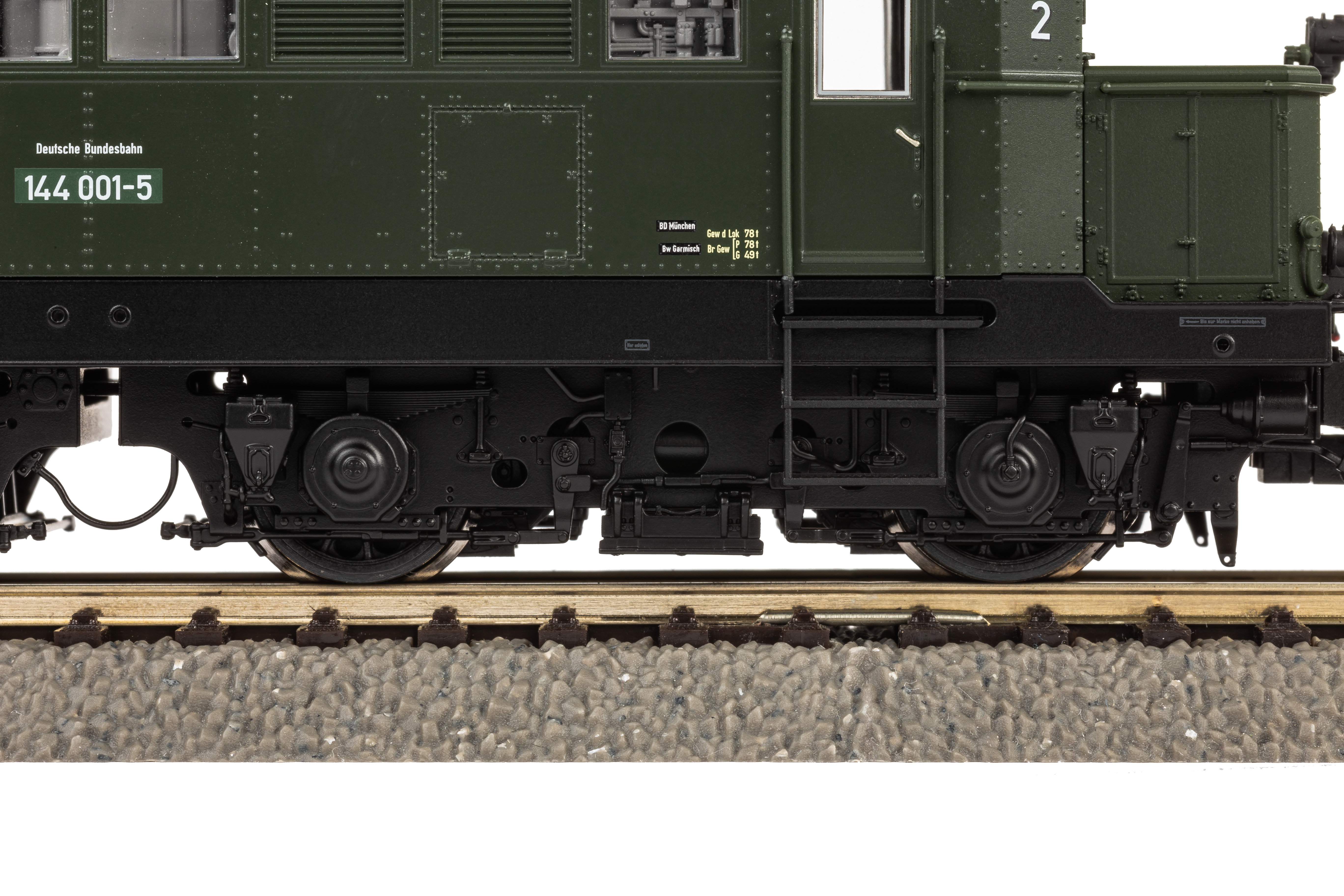 Neuheit 2024: Die Erfolgsgeschichte der Baureihe E 44 begann 1930 mit der von den Siemens-Schuckertwerken gebauten Vorserienlok E 44 001. Ihr folgte ab 1932 die erste Serie von laufachslosen Elektroloks mit Einzelachsantrieb in Deutschland. Eine Erfolgsgeschichte ist auch die PIKO E 44. Im Rahmen dieses Projekts wurde erstmals die bekannte Vorserienlok E 44 001, spätere 144 001-5, als Großserienmodell umgesetzt. Die Miniaturen der Vor-, wie auch der Serienloks brillieren durch ihre exakt maßstäbliche Umsetzung. Gleichermaßen scharfe wie präzise Gravuren am Gehäuse sorgen für enorme plastische Tiefe und unterstreichen den exzellenten Gesamteindruck. Dies setzt sich auch im Fahrwerksbereich mit zahlreichen extra angesetzten Teilen an den markanten Drehgestellen fort. Identisch in der Modellqualität, wurden dennoch die Unterschiede zwischen den Vorbildlokomotiven in größtmöglicher Detailtiefe im Modell umgesetzt. Auch technisch lässt das Modell kaum Wünsche offen: Der Antrieb ist gleichermaßen bewährt wie robust, eine PluX22-Schnittstelle ermöglicht die kinderleichte Nachrüstung eines Digital-Decoders. In dieser Konstellation ist beispielsweise das Schalten von Maschinenraum- und Führerstandsbeleuchtung möglich. Die werkseitig mit einem PSD XP Sound-Decoder mit Fahrzeugsound ausgestatteten Varianten bringen das typische "Knurren" des Tatzlagerantriebs auf die Modellbahn.