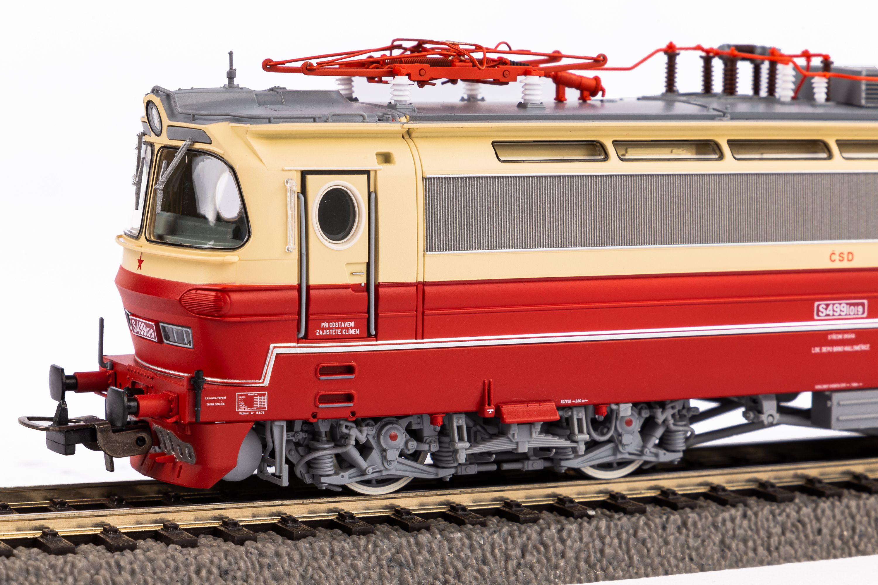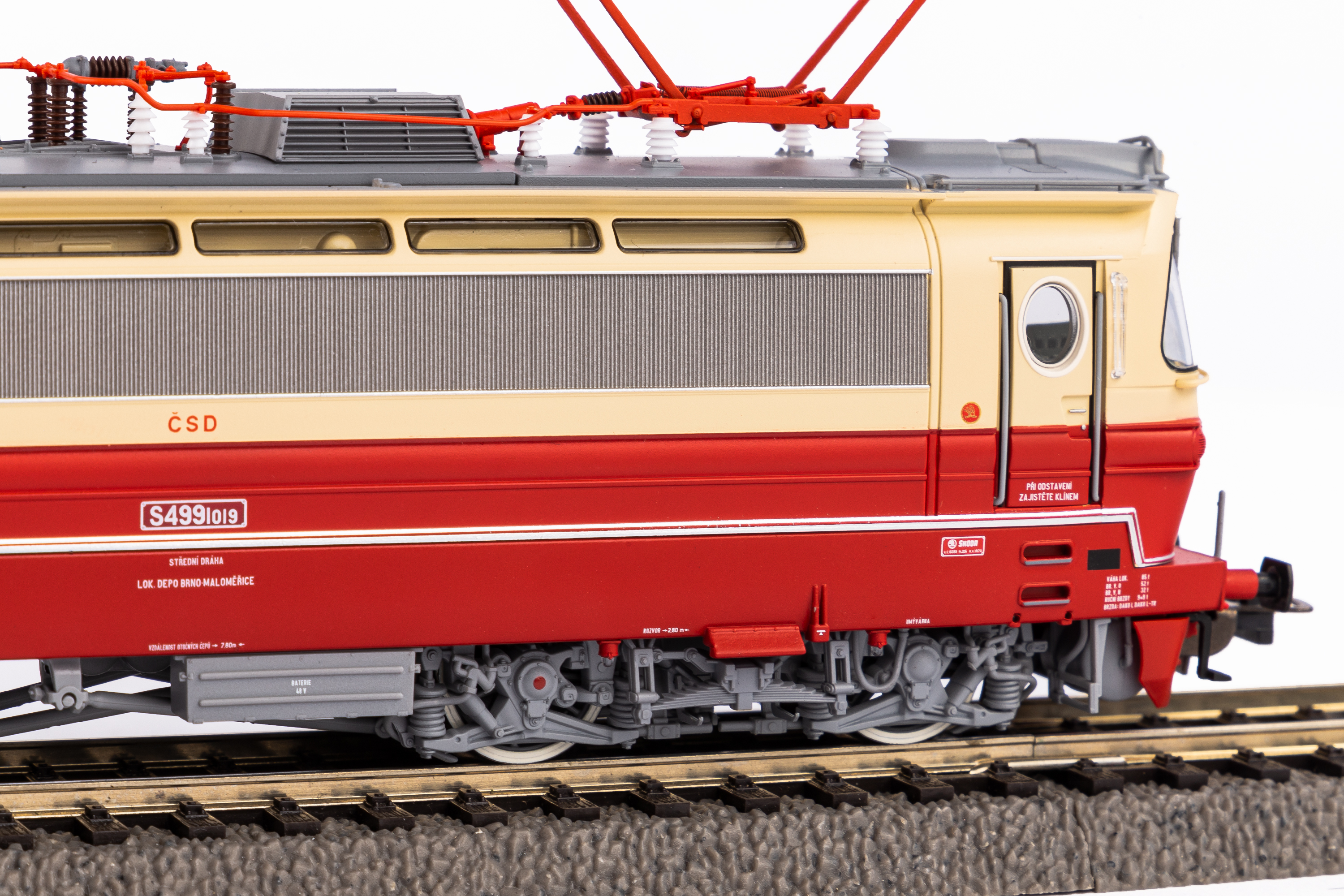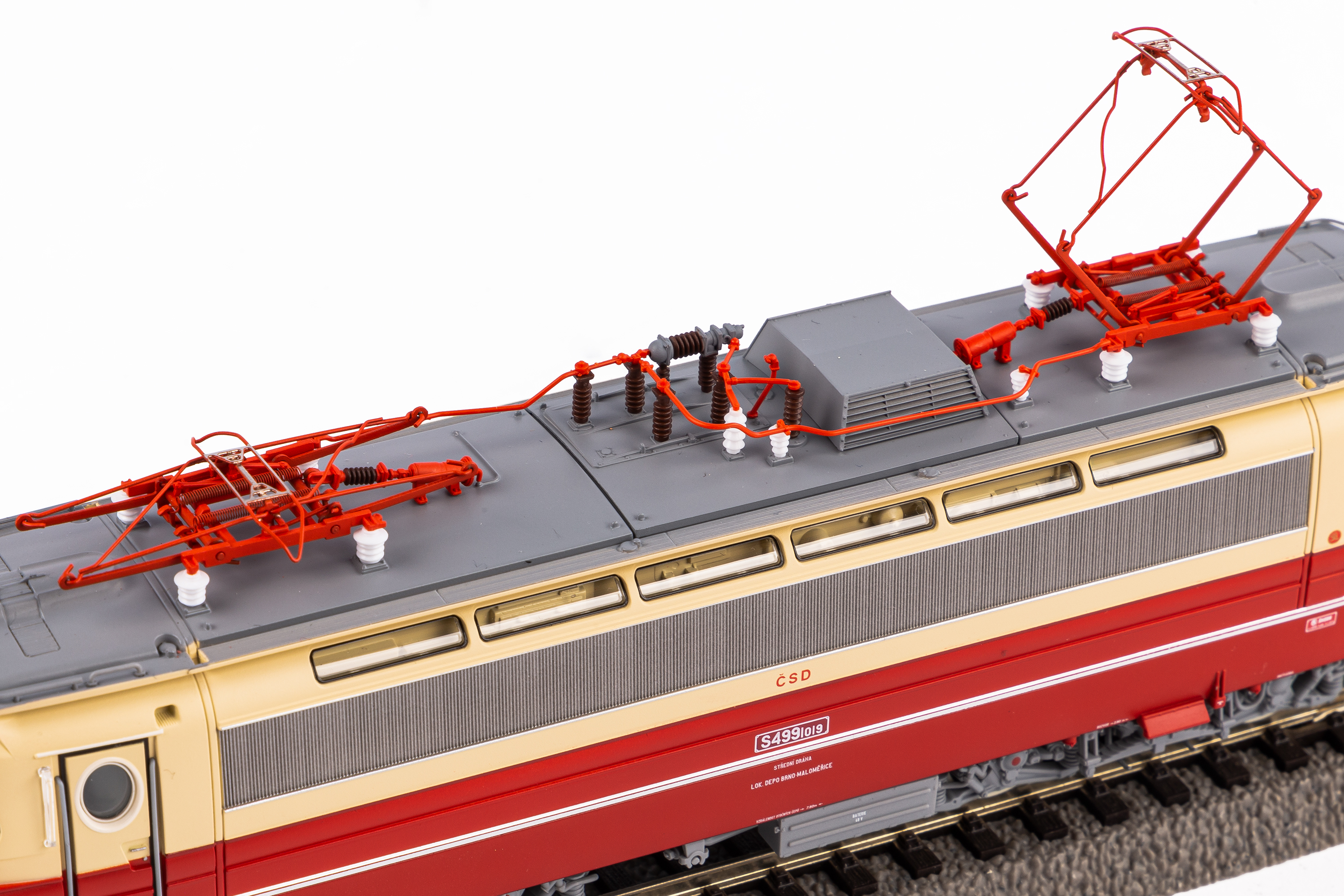 Die Anmut der formschönen Maschinen vom Typ Skoda 47E "Laminátka" wurde hervorragend in den Maßstab 1:87 übertragen und ein absolut stimmiges Gesamtbild geschaffen. Die vielen attraktiven Details, wie etwa die Oberlichter im Maschinenraum, wurden elegant umgesetzt und die stark gliedernde Linienführung des Lokkastens durch scharfe Gravuren visualisiert. Präzise nachgebildet wurden technische Elemente, wie der Drehgestelle, welche die gelungene Formgebung des Modells komplettieren. Die farbenfrohe Livree des Vorbilds, samt dynamisch wirkender Zierelemente, steht der Lok auch in 1:87 dank aufwendiger Lackierung und Bedruckung ausgezeichnet. Angetrieben wird die Lok durch einen fünfpoligen Motor, dessen gleichmäßiger Lauf durch zwei Schwungmassen perfektioniert wird. Eine mit der Fahrtrichtung wechselnde Beleuchtung in Rot und Weiß ist selbstverständlich vorhanden und in zeitgemäßer LED-Technik ausgeführt. Die Elektrolok verfügt als Soundmodell werkseitig bereits über einen mfx®-fähigen PluX22-SoundDecoder.