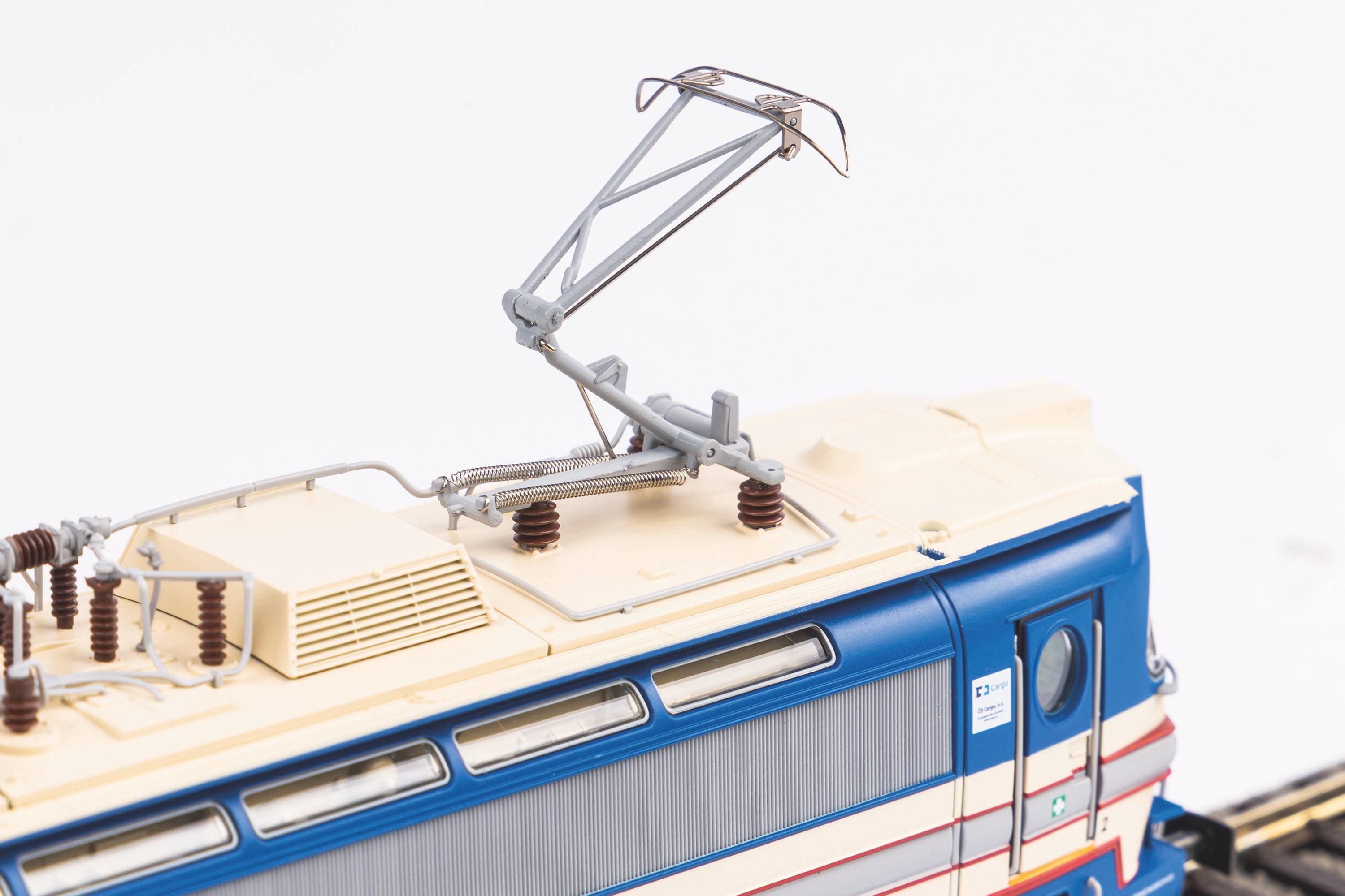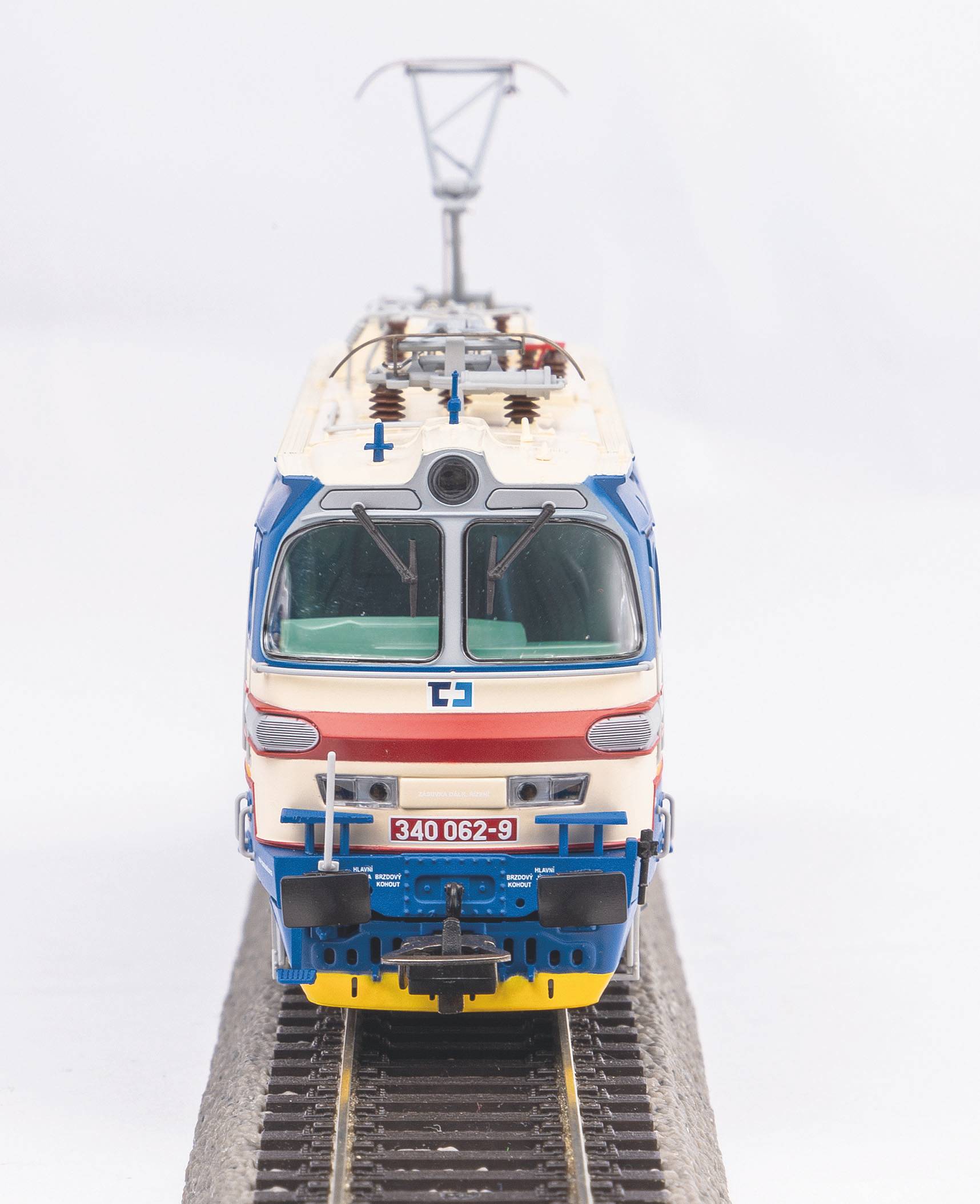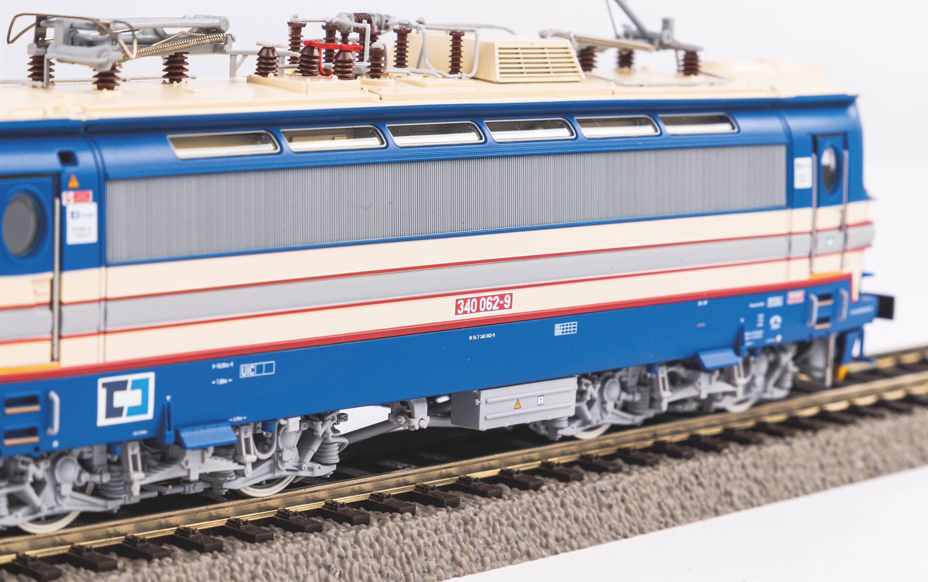 Variante der BR S499 als BR 340 der CD in Epoche VI. Die Anmut der formschönen Maschinen vom Typ Skoda 47E "Laminátka" wurde hervorragend in den Maßstab 1:87 übertragen und ein absolut stimmiges Gesamtbild geschaffen. Die vielen attraktiven Details, wie etwa die Oberlichter im Maschinenraum, wurden elegant umgesetzt und die stark gliedernde Linienführung des Lokkastens durch scharfe Gravuren visualisiert. Präzise nachgebildet wurden technische Elemente, wie der Drehgestelle, welche die gelungene Formgebung des Modells komplettieren. Die farbenfrohe Livree des Vorbilds, samt dynamisch wirkender Zierelemente, steht der Lok auch in 1:87 dank aufwendiger Lackierung und Bedruckung ausgezeichnet. Angetrieben wird die Lok durch einen fünfpoligen Motor, dessen gleichmäßiger Lauf durch zwei Schwungmassen perfektioniert wird. Eine mit der Fahrtrichtung wechselnde Beleuchtung in Rot und Weiß ist selbstverständlich vorhanden und in zeitgemäßer LED-Technik ausgeführt. Die Elektrolok verfügt als Soundmodell werkseitig bereits über einen PluX22-SoundDecoder.