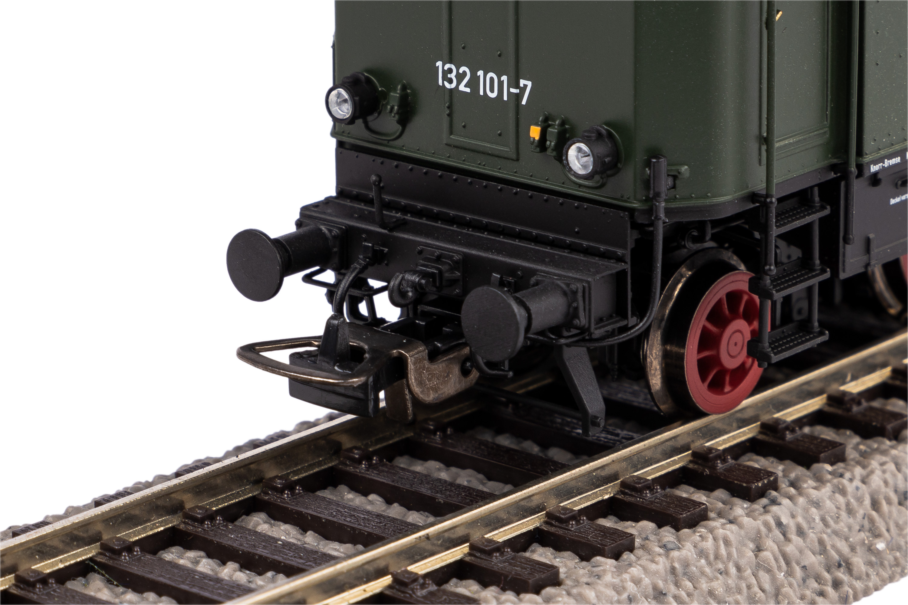 Variante der BR E 32 in der Ausführung als BR 132 in Epoche IV. Nach den Baureihen E 52 (Art.-Nr. 51824) und E 91 (Art.-Nr. 51540) bringt PIKO nun mit der E 32 einen weiteren wichtigen Vertreter der Altbau-Elektroloks. Der Stangenantrieb und die Speichenräder, die kurze Bauform sowie die Achsanordnung 1'C1', lassen die Verwandtschaft der Altbau-Elloks zu den Dampfloks durchscheinen. Nun hat PIKO dieses Stück Eisenbahngesichte en miniature umgesetzt. Besonderheiten sind die fein zu erkennenden Detaillierungen, wie die Nietung am Dach, angesetzte Teile, wie Sandkästen, Bremsschläuche und Handstangen. Zeitgenössische Lampen sowie die filigranen Scherenstromabnehmer runden das Modell optisch ab. Technisch weiß die Lok mit einem serienmäßig eingebauten Lichtwechsel in LED-Technik mit roter Schlussbeleuchtung zu begeistern. In der Soundvariante ist die E 32 ab Werk mit einem PSD XP 5.1 S SoundDecoder ausgestattet. Als weiteres Highlight verfügt die BR 132 über PIKO TrainSound® onboard.