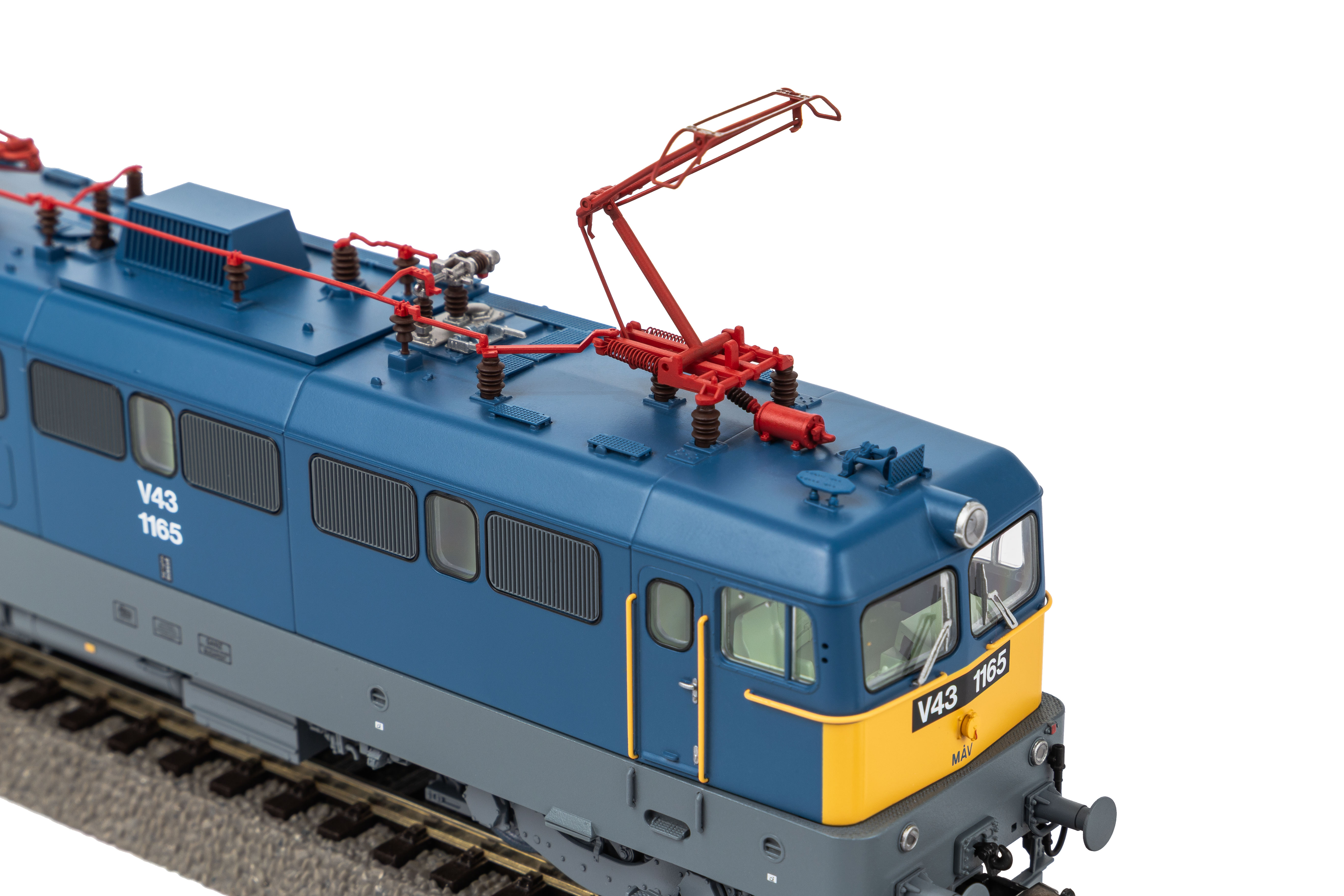 Variante der V43 als modernisierte V43.3 der MÁV in Epoche V. Die farbenfrohe Ausführung zeigt sich äußerst detailreich und vorbildgetreu graviert. Im Inneren besitzt die Lok robuste Antriebstechnik gepaart mit modernster Elektronik. Dank moderner PluX22-Schnittstelle und ausreichend Platz auf der Platine ist das Modell perfekt für die Nachrüstung eines Decoders mit größtmöglichem Lautsprecher vorbereitet.