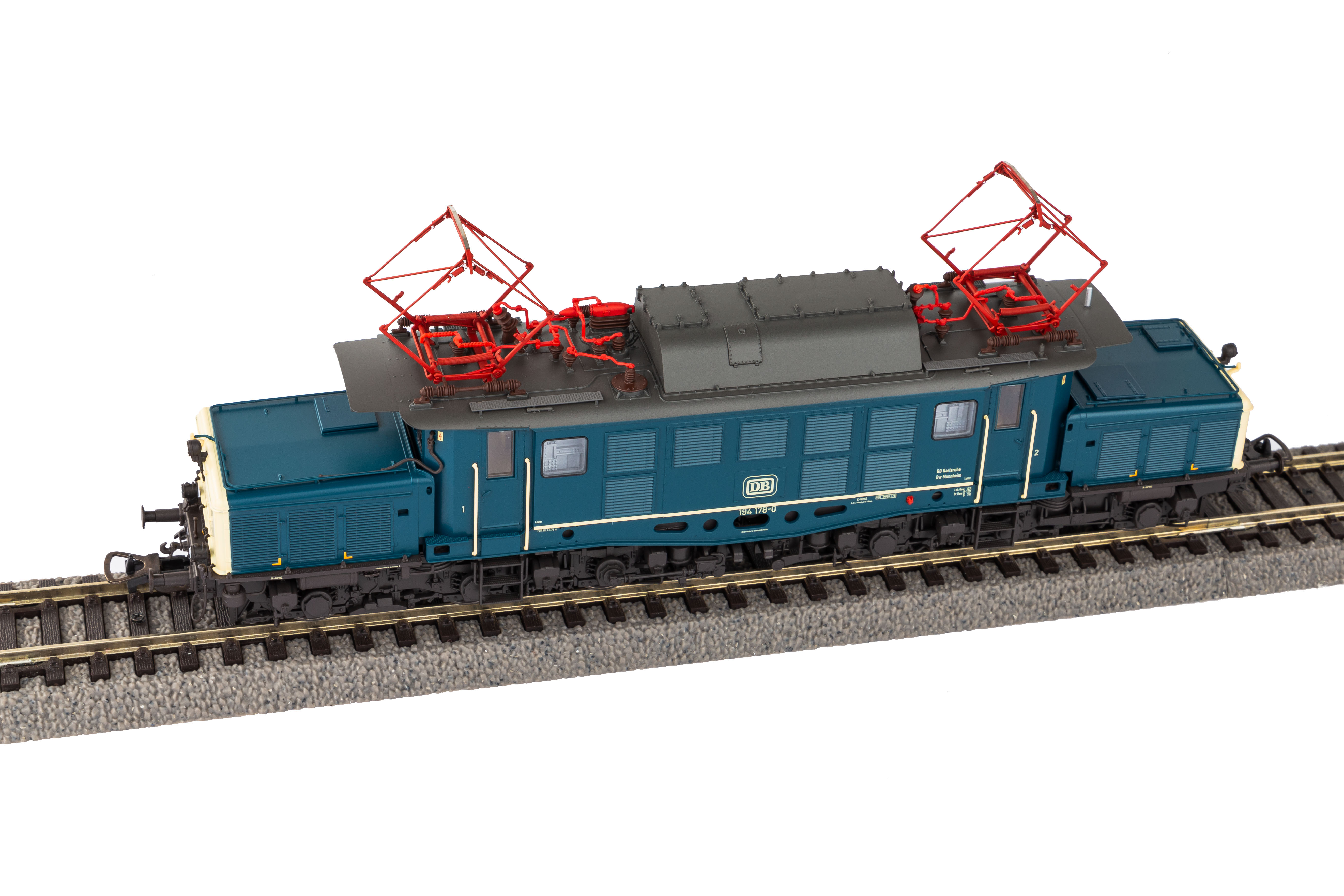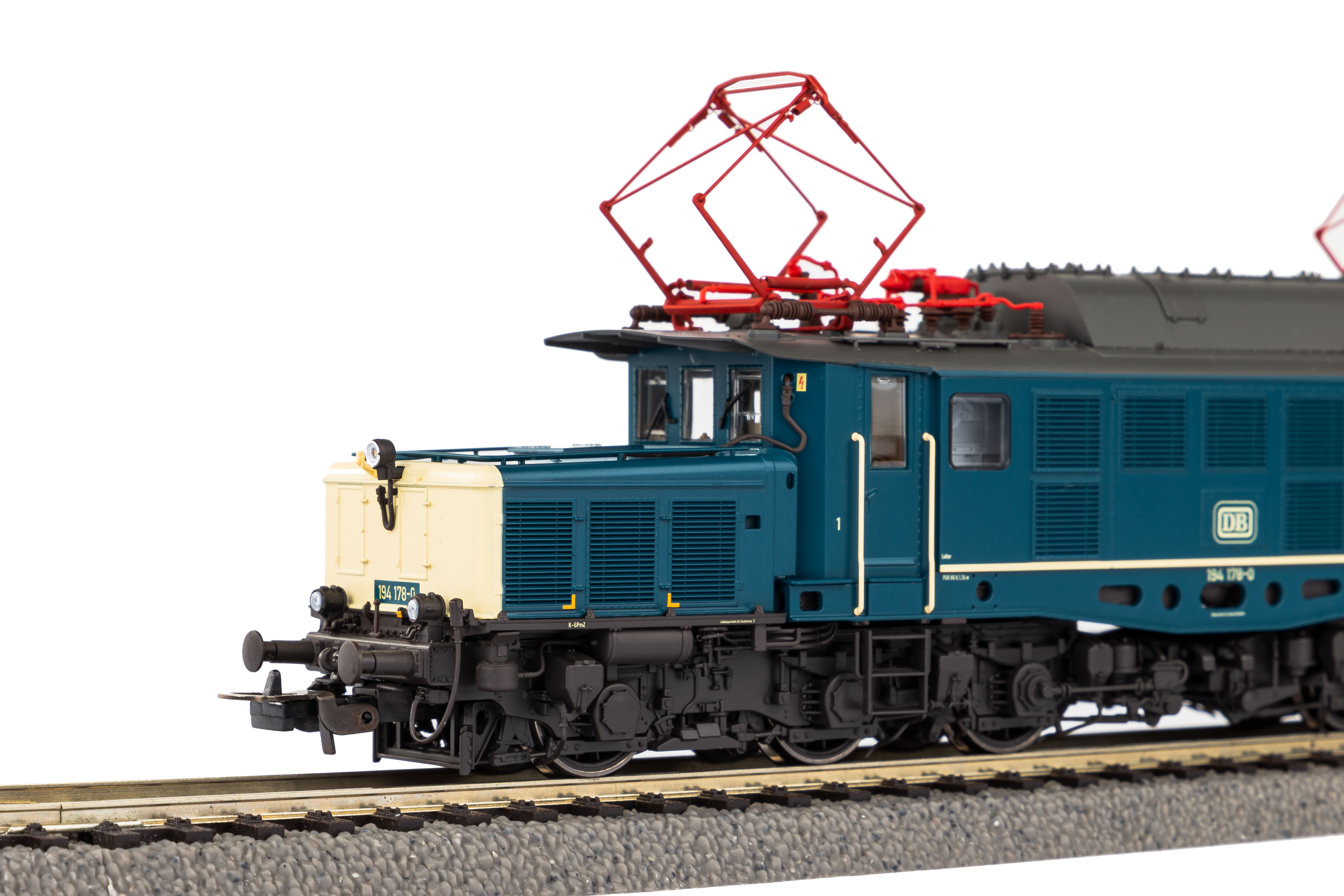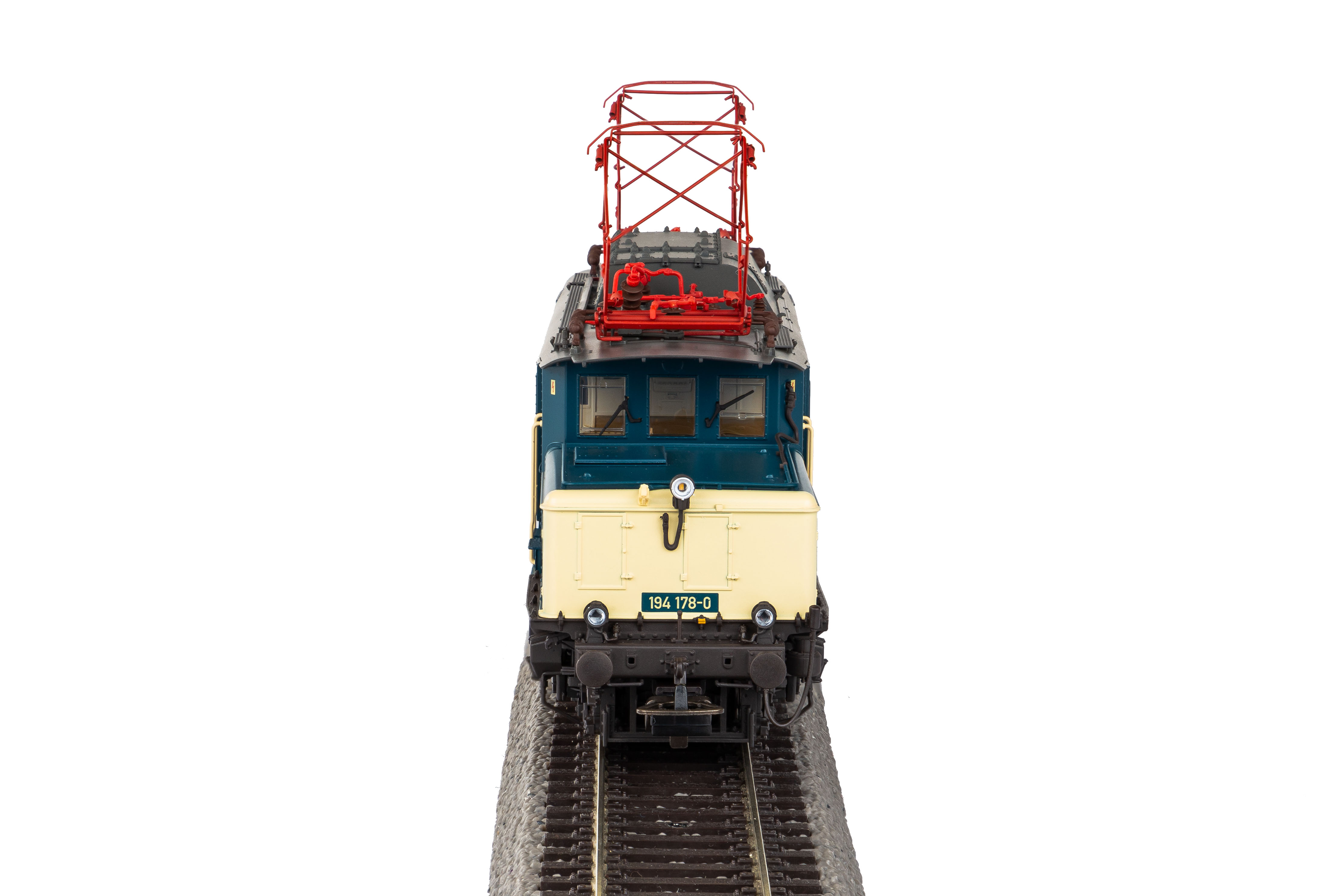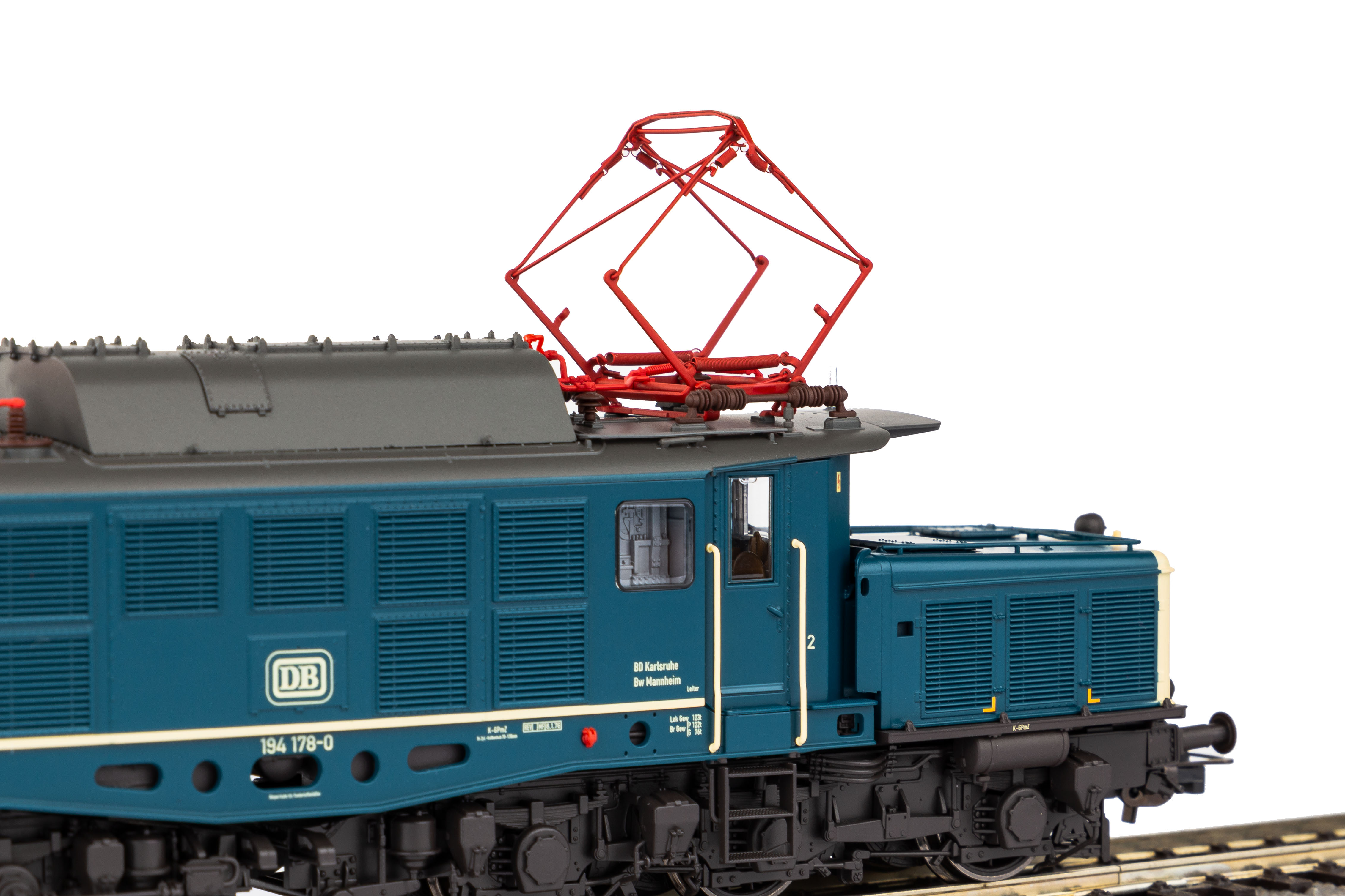 Der Bedarf nach schweren Güterzuglokomotiven veranlasste die DB in den Jahren 1954 bis 1956 insgesamt 43 Lokomotiven der Baureihe E 94 nachzubauen. Hierzu gehörte auch die E 94 178, welche nach der Umstellung des DB Baureihenschemas 1968 als 194 178 geführt wurde. Bei der Hauptuntersuchung am 08. Januar 1976 erhielt die Lokomotive eine Lackierung in den ab 1974 bei der DB gültigen Farben Ozeanblau und Elfenbein. Die Aufteilung der Farben mit einer hellen Kontrastfläche an der Front überzeugte aufgrund der Schutzanfälligkeit in diesem Bereich jedoch nicht. Als einzige Lok ihrer Baureihe mit dieser Lackierung trug sie auch den Spitznamen "Blaue Mauritius".PIKO hat diese besondere Lok unter Berücksichtigung aller Besonderheiten des Vorbildes in den Maßstab 1:87 transferiert. Dank PluX22-Schnittstelle ist das PIKO Modell für den unkomlizierten Einbau eines Decoders vorbereitet.