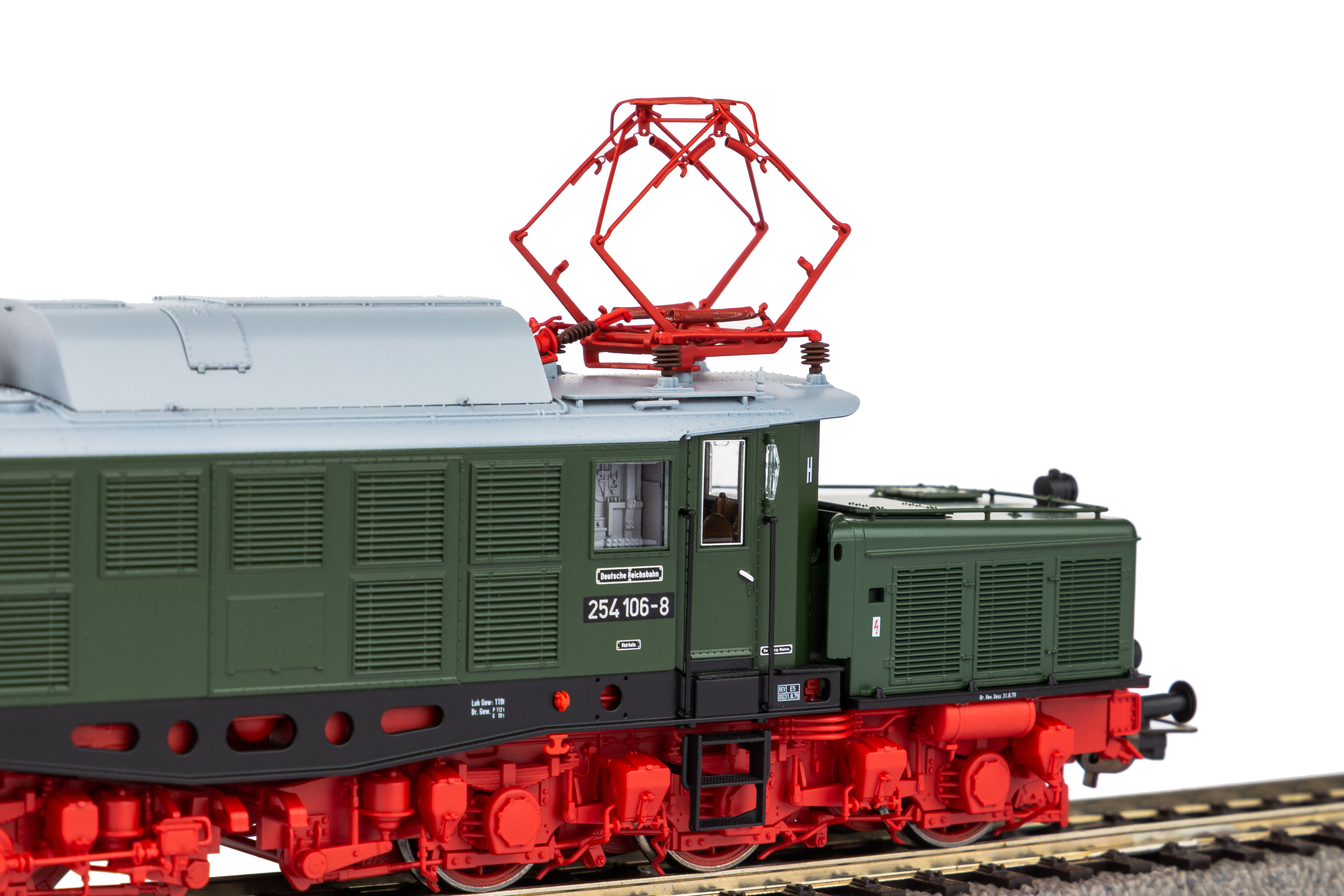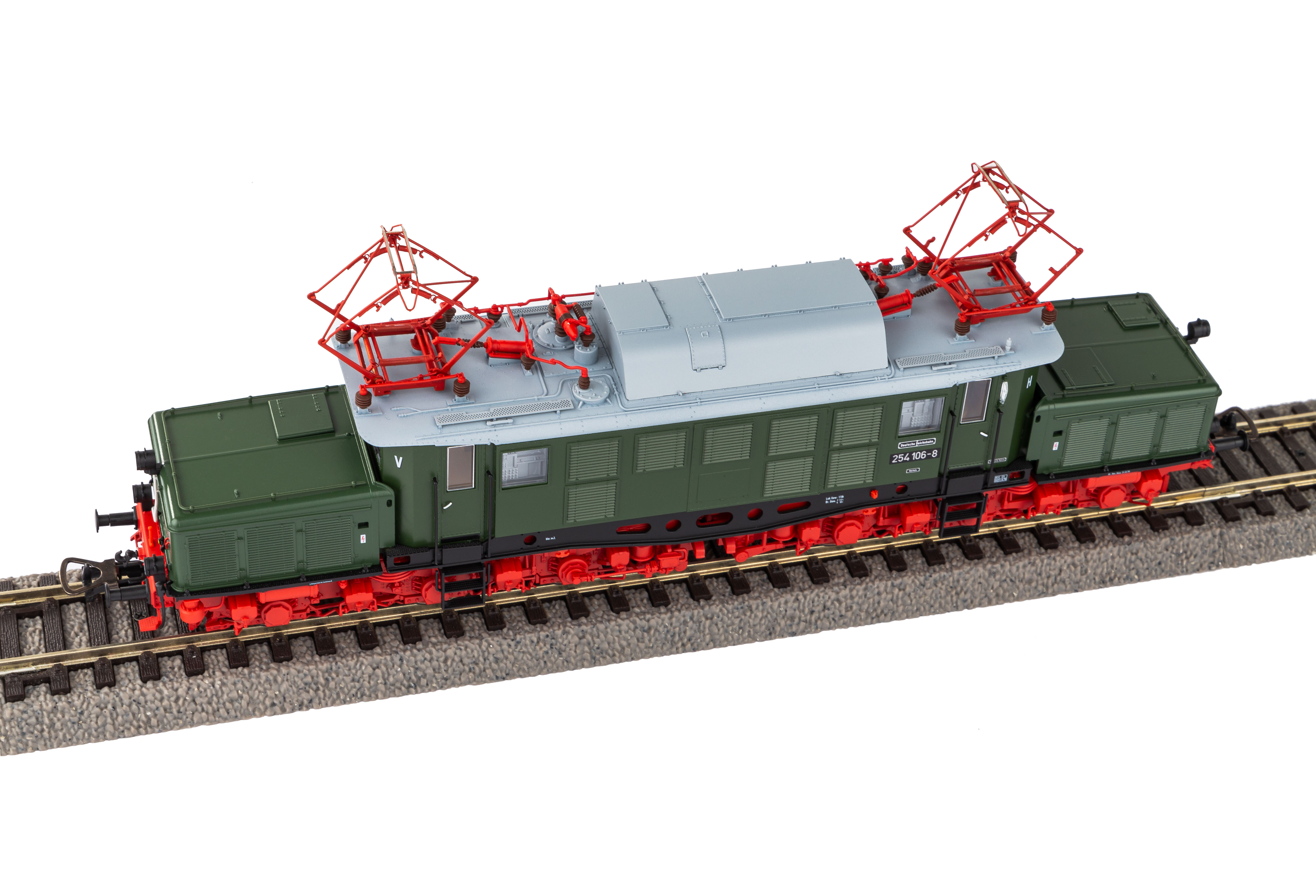 Neuheit 2023: Formvariante der BR E 94 in der Ausführung als BR 254 der DR in Epoche IV. Ab 1970 wurden die Maschinen der Baureihe E 94 bei der DR unter der Nummer 254 geführt. Im Laufe der darauffolgenden Jahre wurden einige Veränderungen an den Lokomotiven vorgenommen. So erhielten Sie neue Stromabnehmer vom Typ RBS 58 und die Drehgestelle wurden rot gestrichen. Diese und weitere Besonderheiten spiegelt auch das PIKO Modell vorbildgetreu wieder.Dank PluX22-Schnittstelle und großzügem Einbauraum ist das Modell für eine unkomplizierte Nachrüstung mit Decoder sowie Sound inkl. größtmöglichem Lautsprecher vorbereitet.