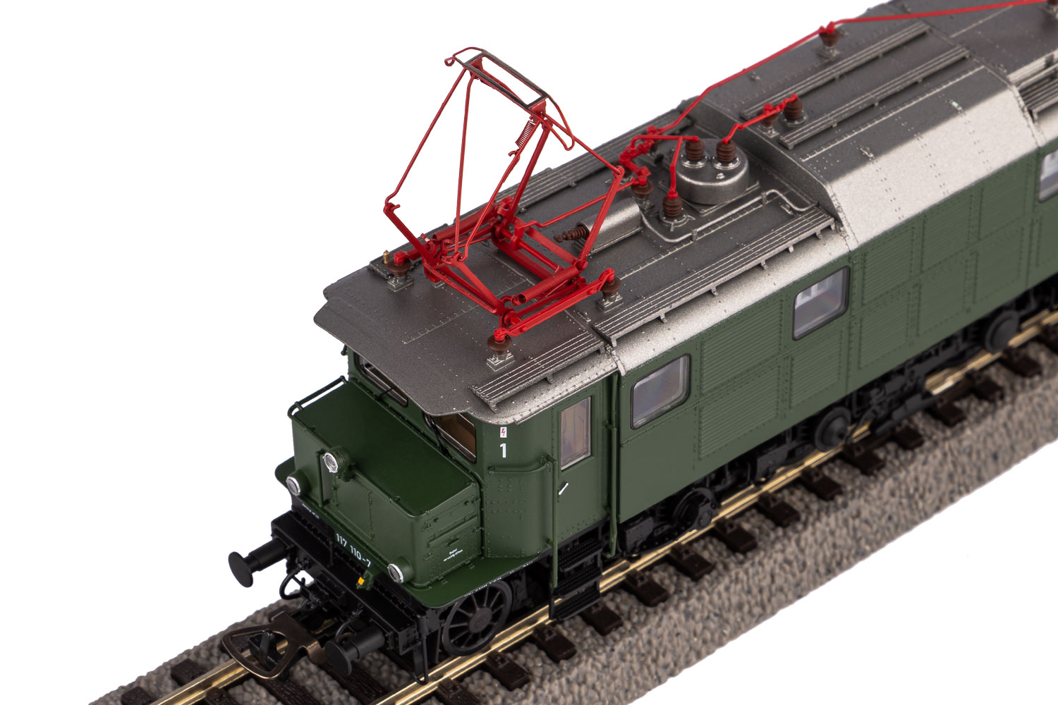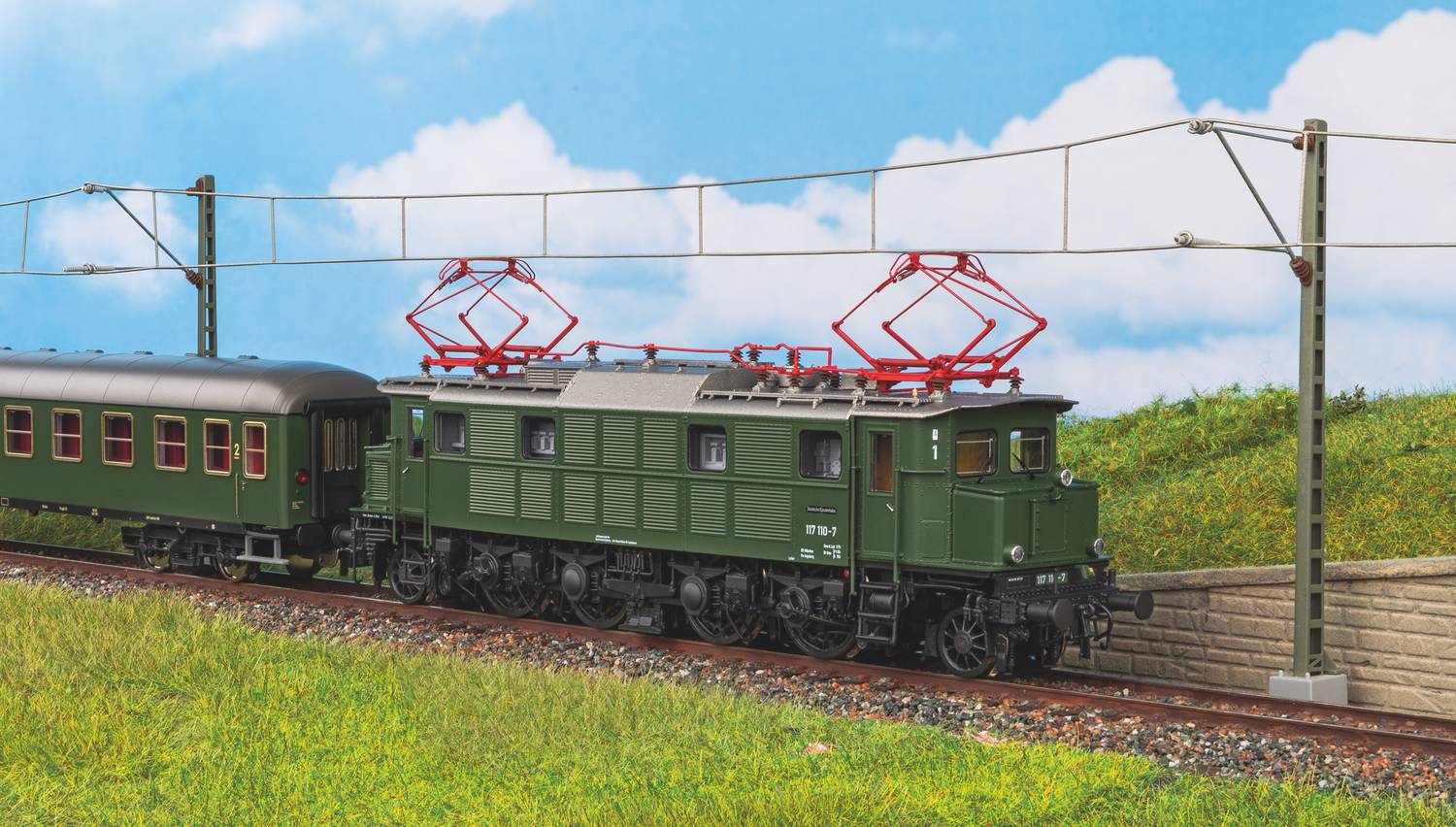 Neuheit 2023: Mit der Neukonstruktion der Baureihe E 17 setzt PIKO konsequent die Serie der bekannten Altbau-Elektrolokomotiven fort. Das Modell gibt die markanten Formen des Vorbildes maßstabsgerecht wieder. Zur perfekten Wiedergabe des Betriebszustandes in Epoche IV wurden alle im Zuge der Modernisierung entstandenen Änderungen am Vorbild auch beim Modell berücksichtigt. Diese betrafen neben den Frontfenstern auch den Dachleitungsverlauf und die Vorbaugestaltung. Technisch ist das neue PIKO-Modell am Puls der Zeit und verfügt über seidenweiche Fahreigenschaften, gute Zugkraft und serienmäßig eingebauten Lichtwechsel. Dieser ist wie die Beleuchtungen in Führerstand und Maschinenraum in modernster LED-Technik ausgeführt. Die Wechselstromversione der Lok ist ab Werk mit einem passenden Decoder ausgestattet und für die Nachrüstung mit Sound vorbereitet.