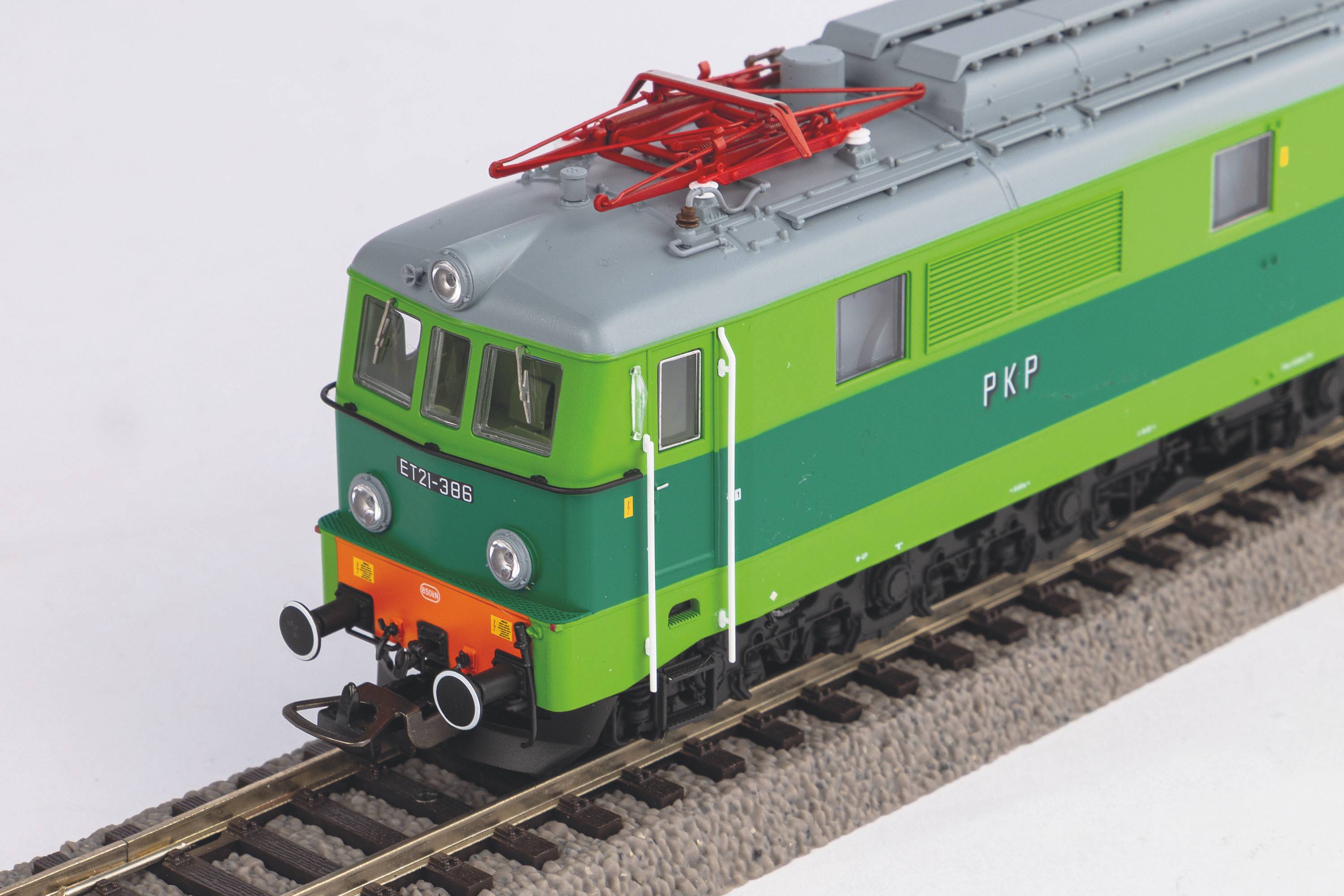 Ein zeitgemäßes Modell der PKP ET21 wird sicher vielen Freunden der Eisenbahn in unserem Nachbarland das Herz aufgehen lassen, zählt die Güterzuglok doch zu den Meilensteinen des Traktionswandels in Polen. Diesen historischen Wert würdigt PIKO bei der Modellumsetzung in der Baugröße H0. Entstanden ist ein Modell, das den Charakter des Vorbilds ausgezeichnet einfängt. Typische Attribute der PIKO Expert Modelle sind auch an der ET21 zu finden: Fein gravierte und äußerst plastische wirkende Lüftergitter, präzise durchbrochene Drehgestellblenden und eine äußerst filigrane Dachausrüstung. Ergänzt werden diese Eigenschaften durch eine absolut vorbildgerechte Lackierung und eine gleichermaßen exakte Bedruckung. Als Antrieb dient dem Modell ein fünfpoliger PIKO Motor mit zwei Schwungmassen. Die Nachrüstung eines Digitaldecoders oder eines Fahrzeugsounds lässt sich dank PluX22-Schnittstelle und passendem Einbauraum ganz einfach bewerkstelligen. Fast schon obligatorisch ist die selbstverständlich in LED-Technik ausgeführte und mit der Fahrtrichtung wechselnde Beleuchtung in den Farben Rot und Weiß.